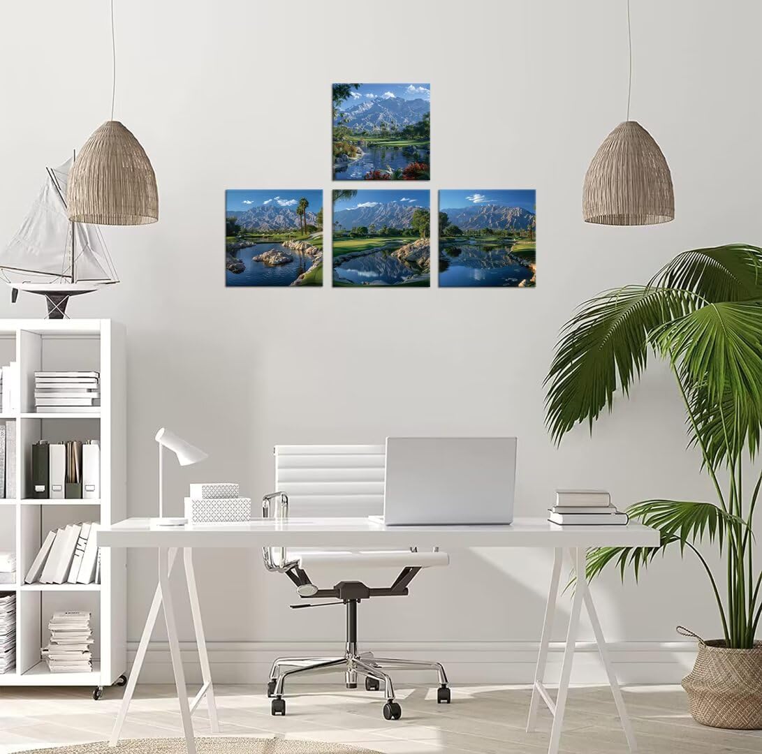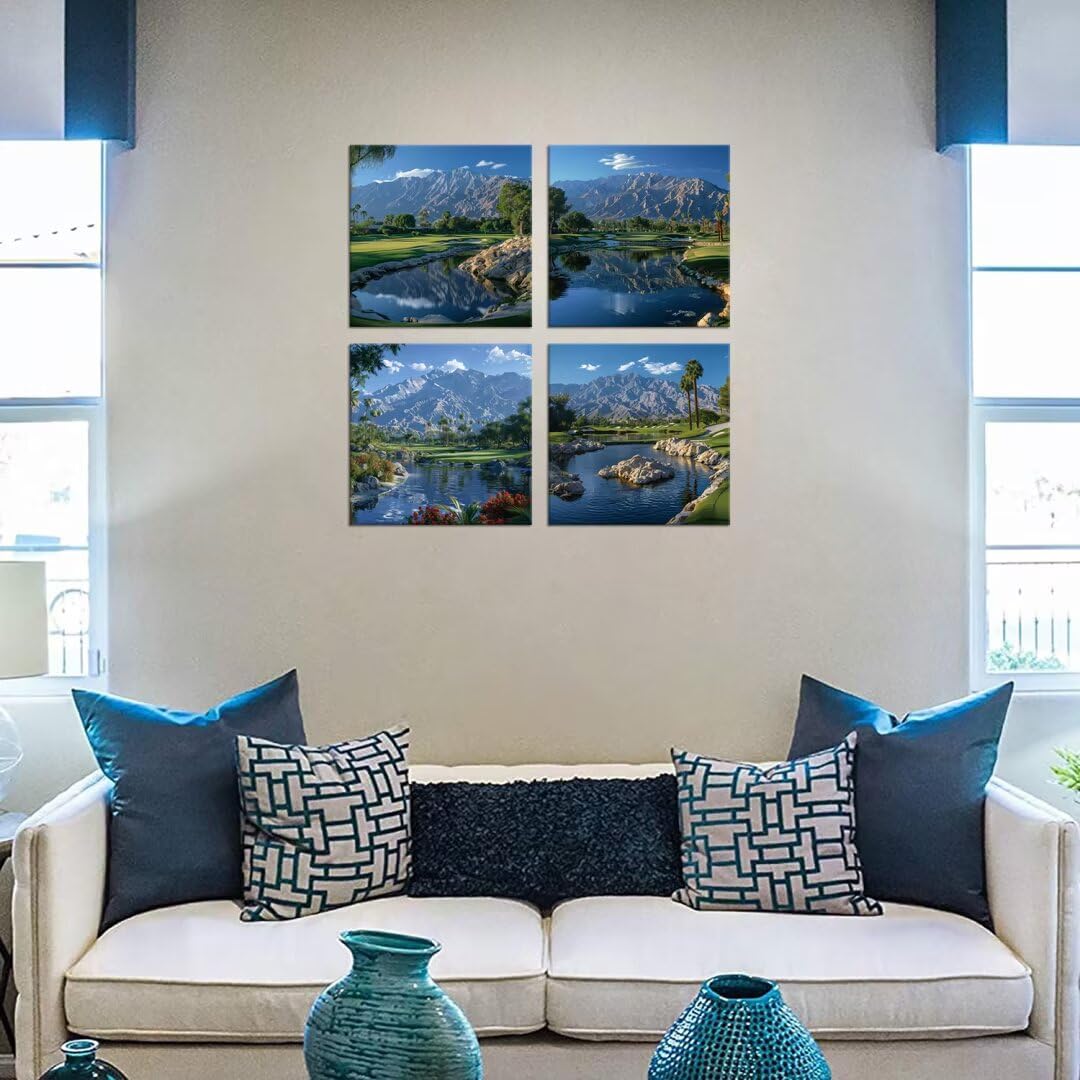 Pankila USA Golf Course Wall Art Golf Artwork Canvas Prints Golf Course Pictures Wall Decor for Living Room Bedroom Bathroom Home Decorations Painting Framed Ready to Hang (20''W x 20''H x 4)