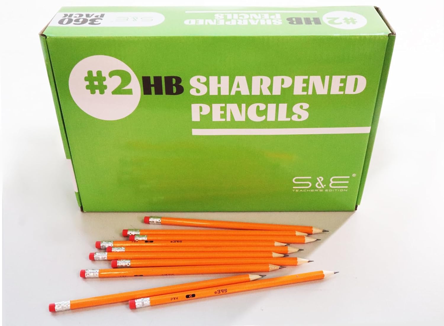 S & E TEACHER'S EDITION 360pcs Pre-sharpened Pencils with eraser top, No.2 pencils #2 HB pencil, Golf, Classroom, Pew, Back to school, 360 pcs/box
