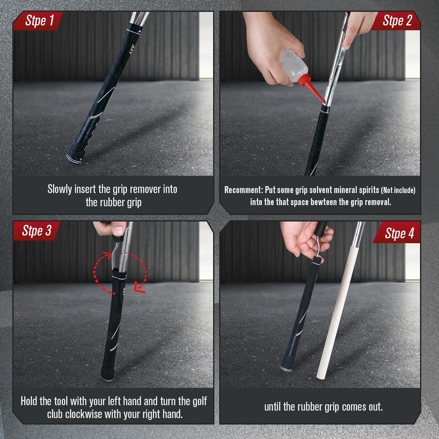 - Easy to Use: Just insert the grip remover into the rubber grip, hold the tool and turn the golf club clockwise slowly, and then the grip will comes out.