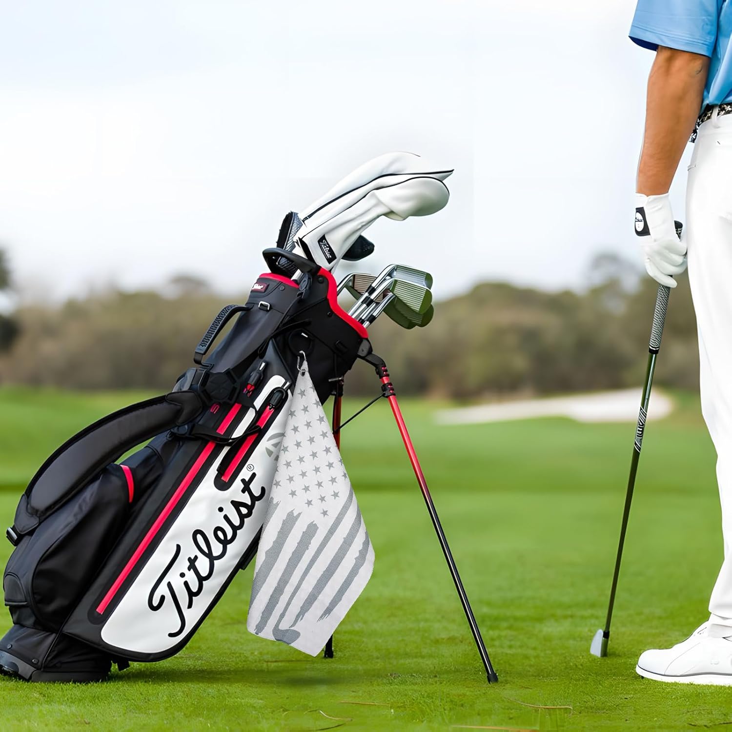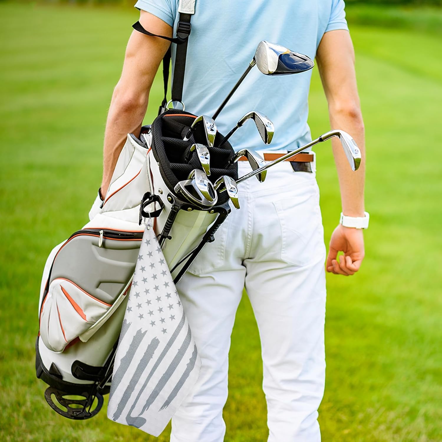 - NON-ABRASIVE MICROFIBER TOWEL : Designed with a waffle American flag pattern, our golf towels for golf bag are non-abrasive. The soft waffle weave fabric towel is lightweight, scratch-resistant, and lint-free. The Golf towels are machine washable, fade-resistant, and wrinkle-free. Our golf towel with eye-catching design at the golf course.