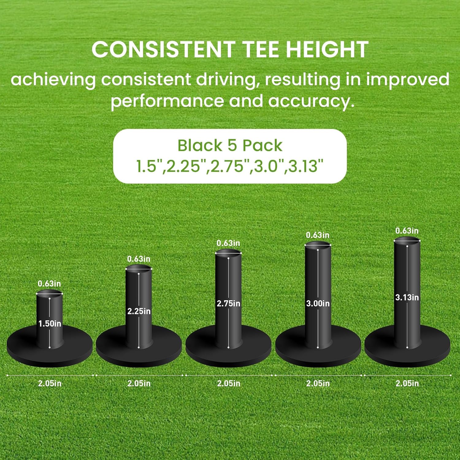 - 5 Different Size Pack, Or 5 Same Size Pack Available, Necessary for All Day Practice: The sizes are 1 1/2’’, 2 1/4’’, 2 3/4’’, 3’’, 3 1/8’’. You can buy the mixed sizes pack for various heights; Also you can buy yours accurate size 5 Pack; The sizes conform with USA regular sizes.