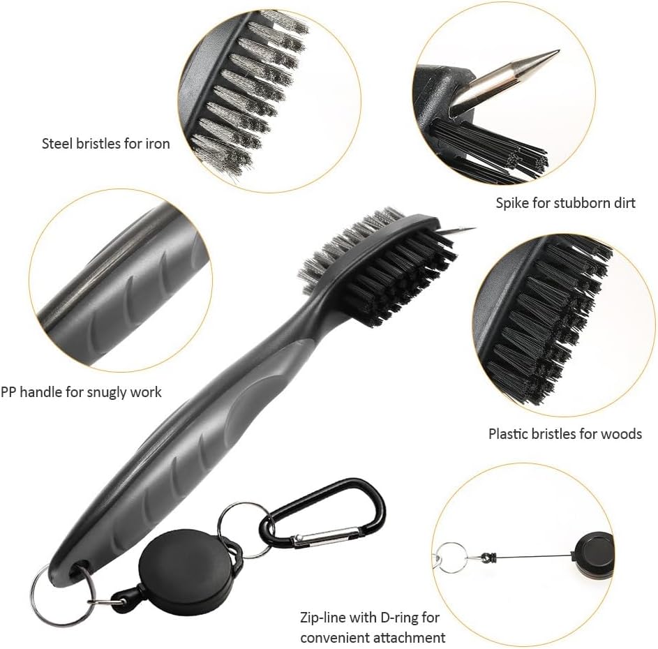 - Multiple Usage: Quick and efficient cleaning of irons while on the fairway, but can for spike cleaning. Spike for cleaning deep in the grooves and golf shoes helps you a better performance in putting.