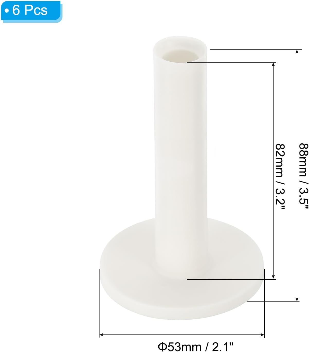- Color: White; Material: Rubber; Overall Size: 88x52mm / 3.5"x2"(L*D); Rod Length: 82mm / 3.2"; Packing List: 6 x Rubber Golf Tee