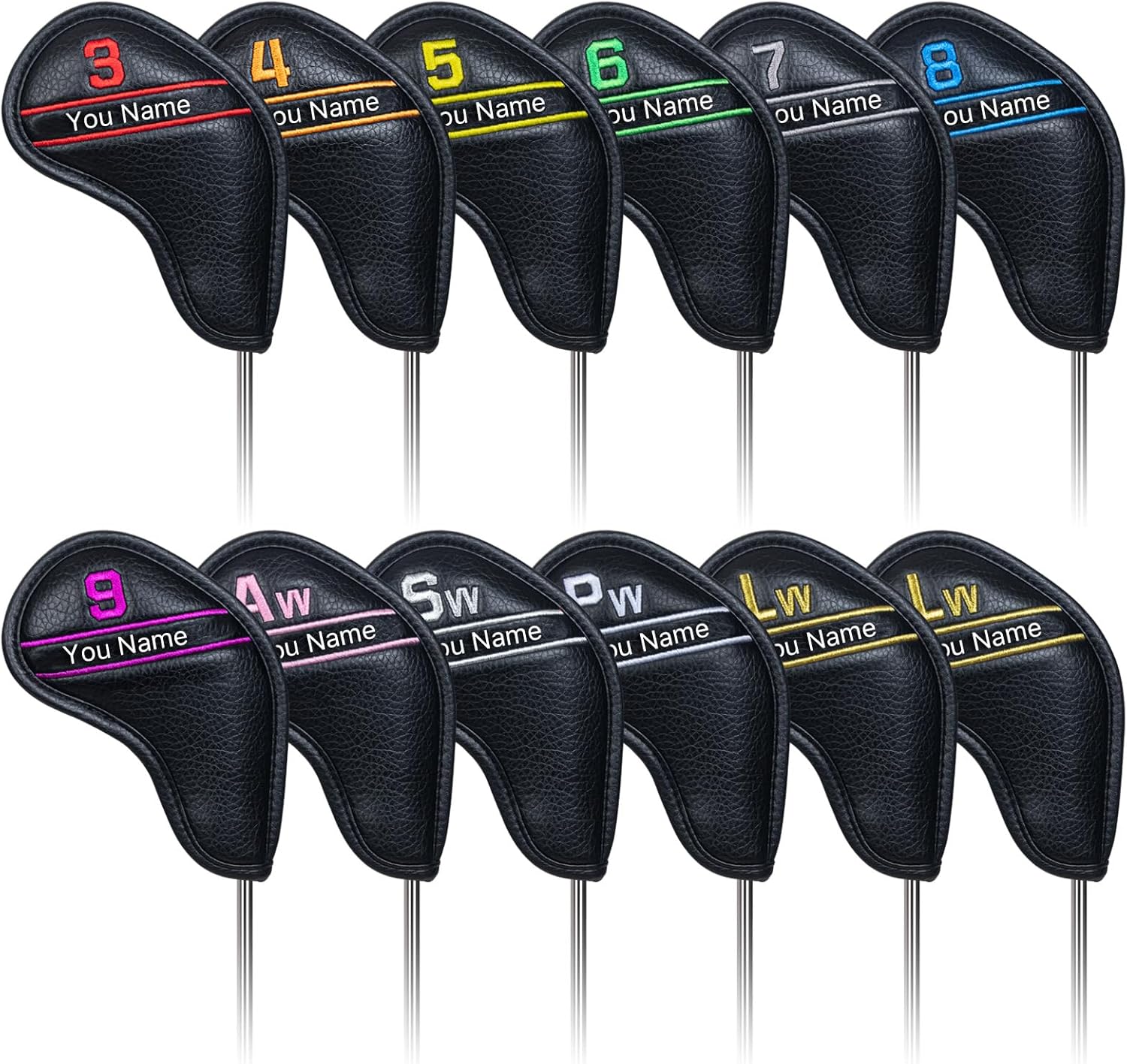 CRAFTSMAN GOLF 12pcs or 1pc Black Leather Golf Iron Head Covers Set Headcover Colorful Number Embroideried for Callaway Ping Taylormade Cobra Also Custom Version w/Your Name