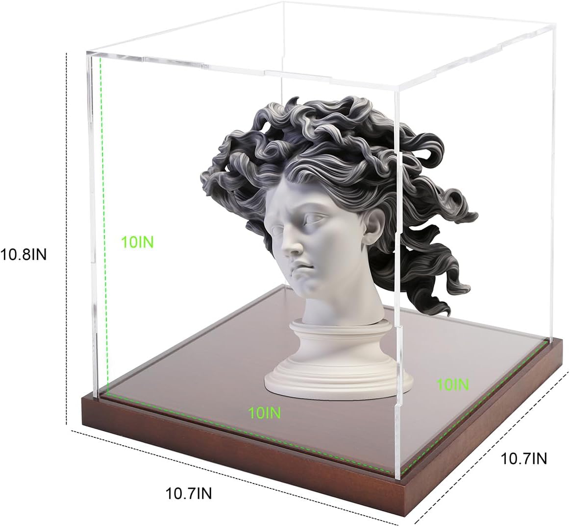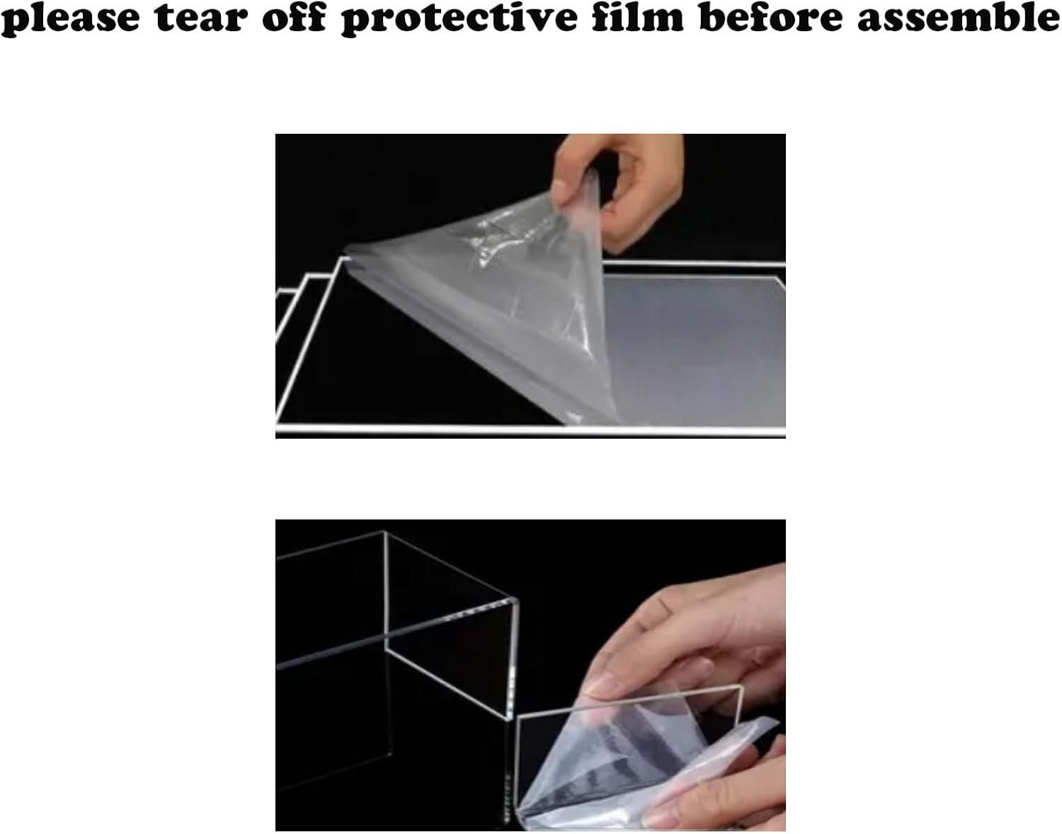 - Easily Assemble: Please tear off the protective film on the acrylic cube, then align the top acrylic plate with the four side panels, no flanges design provides better view, the sturdy wooden base slot design makes the display case easy to open and close