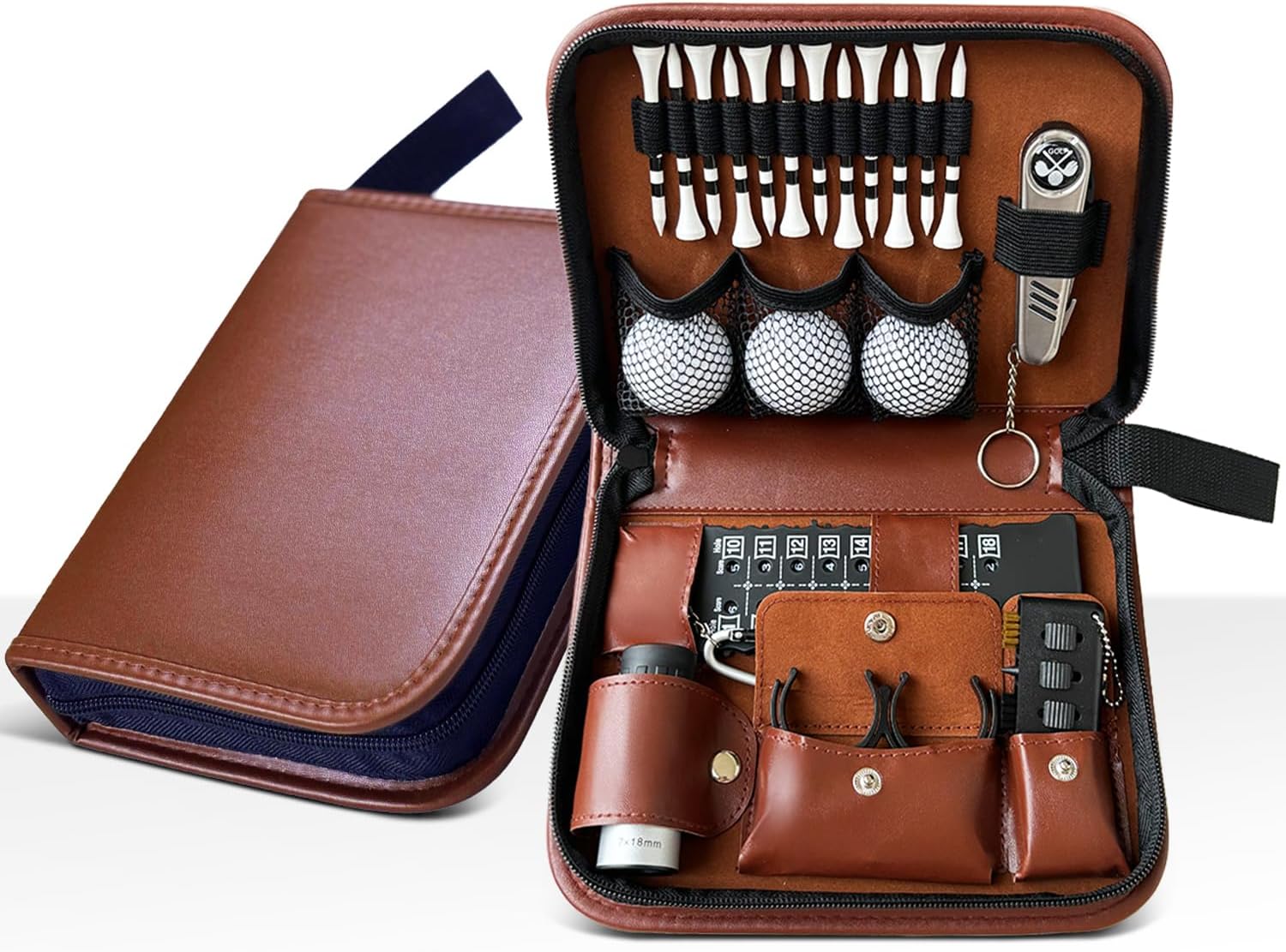 Golf Gift Set - Complete Golfing Accessories for Men & Women, Dad, with 3 Golf Balls, Bag Case, Rangefinder, Tees, Brush, Divot Knife, Scorer & Ball Clamp, Essentials Golf Accessories, Best Golf Gifts