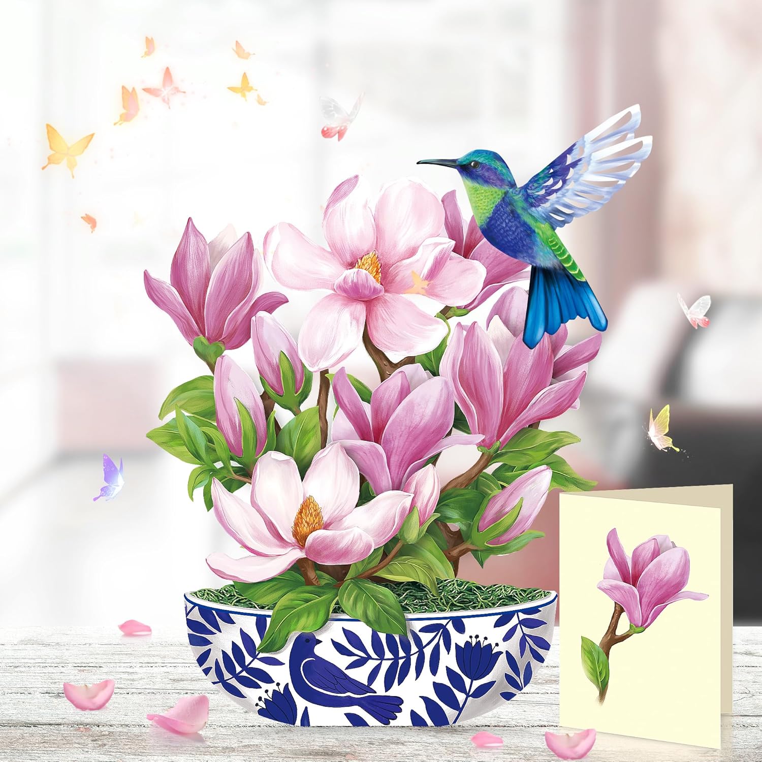 Airpark Pop Up Flower Card, 3D Greeting Card – Magnolia & Bird Design – For Mom, Friend – Ideal for Spring Birthday, Mother’s Day