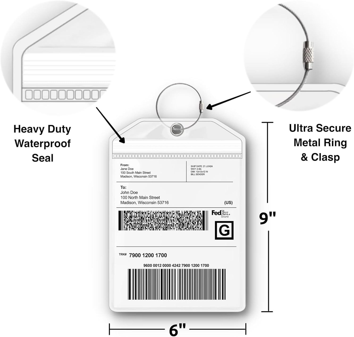 - Perfect Size for Labels - 6 inches wide by 9 inches long, designed to fit oversized/bulk items like golf clubs, skis, strollers as well as standard labels.
