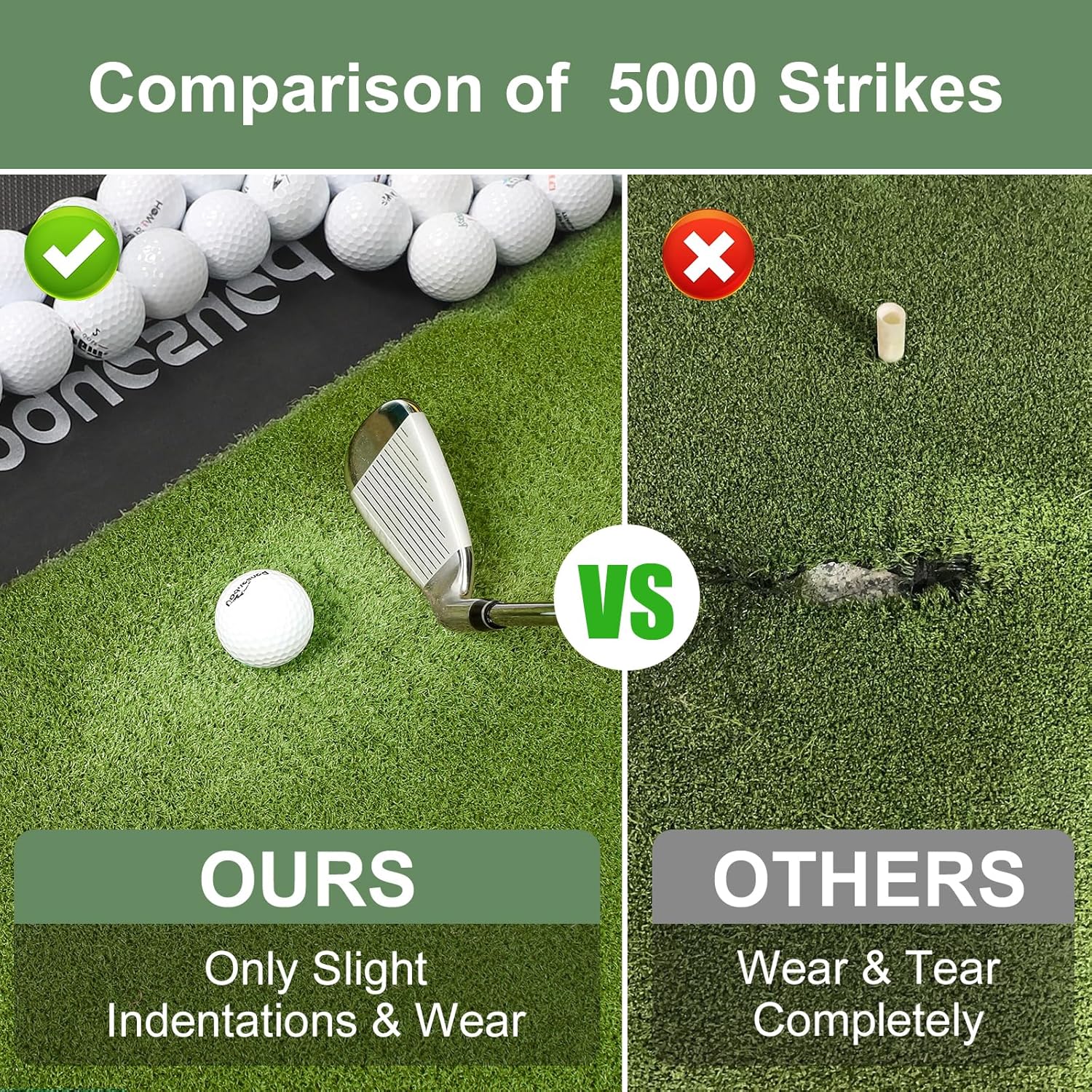 - Enhanced Turf: Upgraded to 0.63 inch for better impact resistance and reduced wear. This commercial-grade artificial turf mimics real grass and includes an anti-tear layer between the turf and foam base, helping this golf mat practice indoor withstand high-frequency use and extend its life