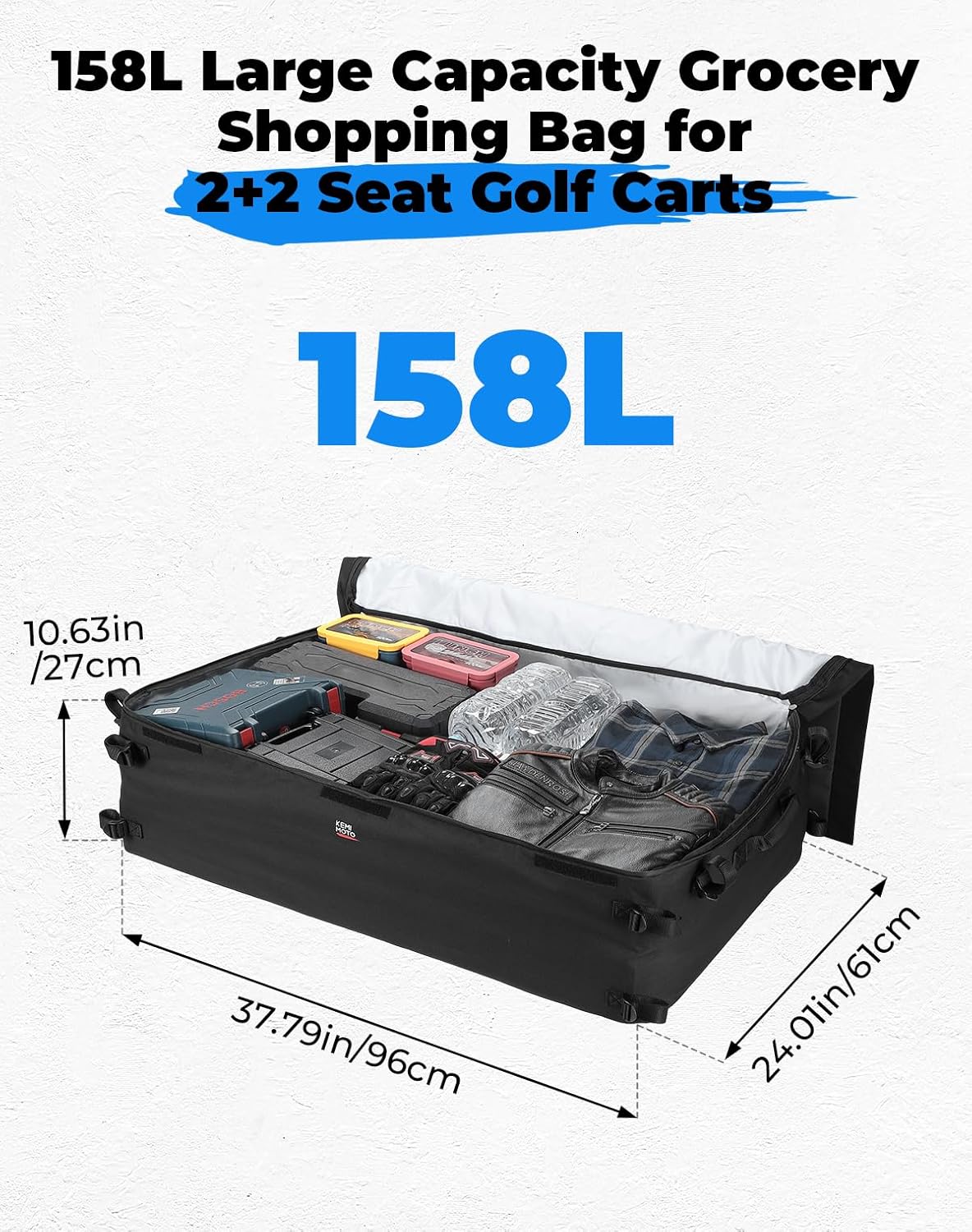 KEMIMOTO Universal Golf Cart Shopping Storage Bag for 2+2 Passengers Golf Cart, Compatible with Club Car, EZGO, Drive, and Kandi Electric Carts, Black
