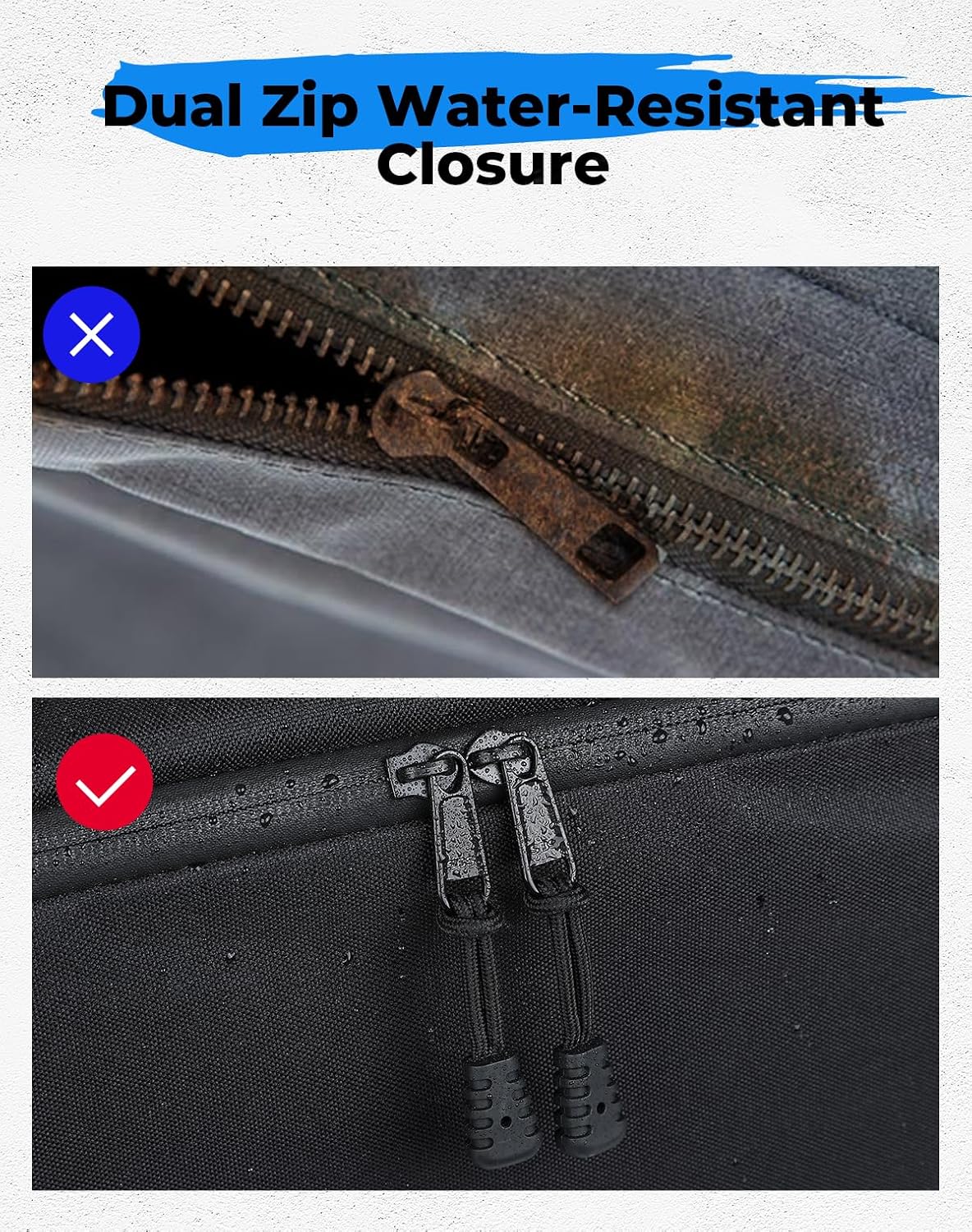- Dual Smooth Zippers: This bag features waterproof double zippers and a wide opening, making it easy to store and access small items