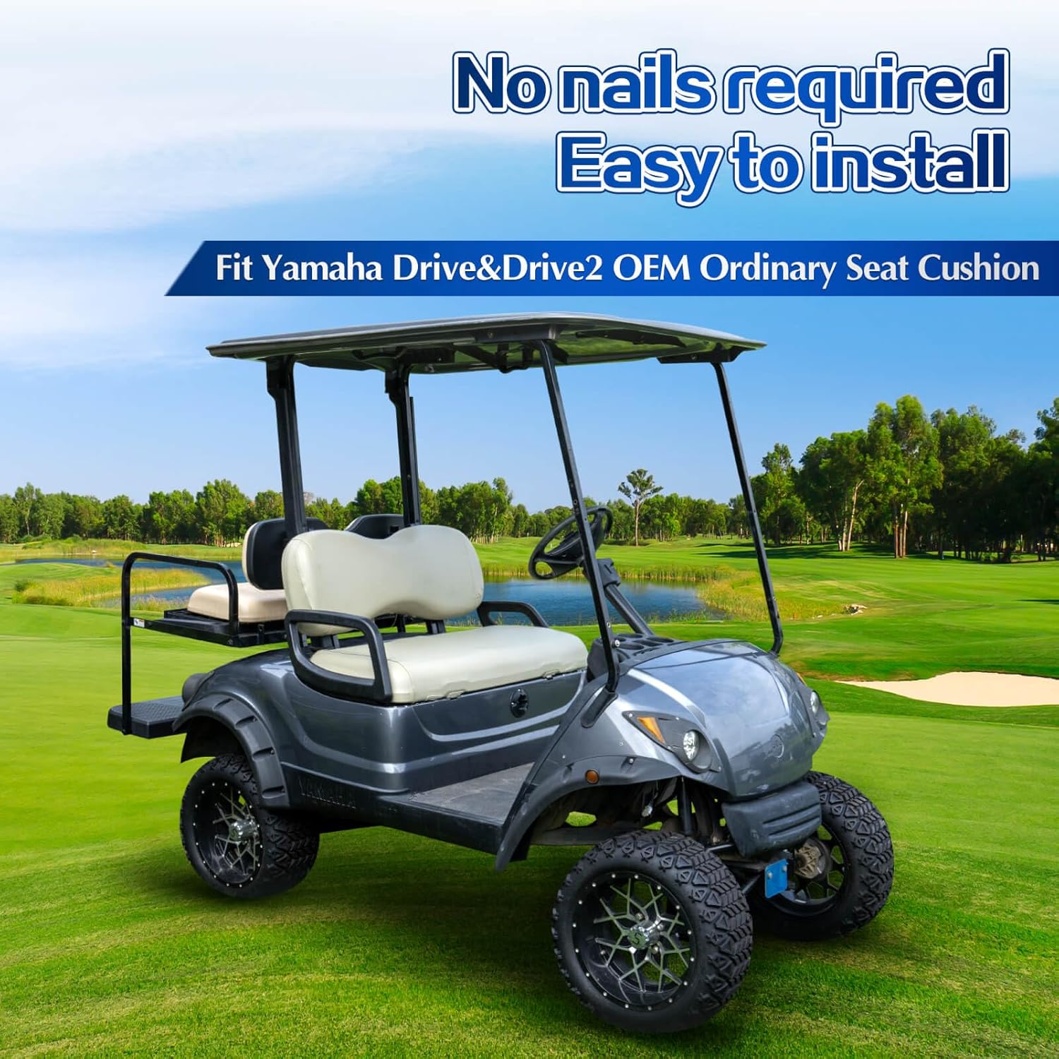 - ăApplicable ScopeăNOKINS Golf Cart Waterproof Oyster Grey front seat cover,this product contains 1 front backrest cover (about 36 X 14.1 X 6.2 inches) and 1 front seat cover (about 40.9 X 19.6X 5.5 inches), It is suitable for Yamaha to drive G29 2007-2016 and 2017+to drive 2 natural gas and electric original ordinary golf carts.Note: Not suitable for thicker luxury cushions