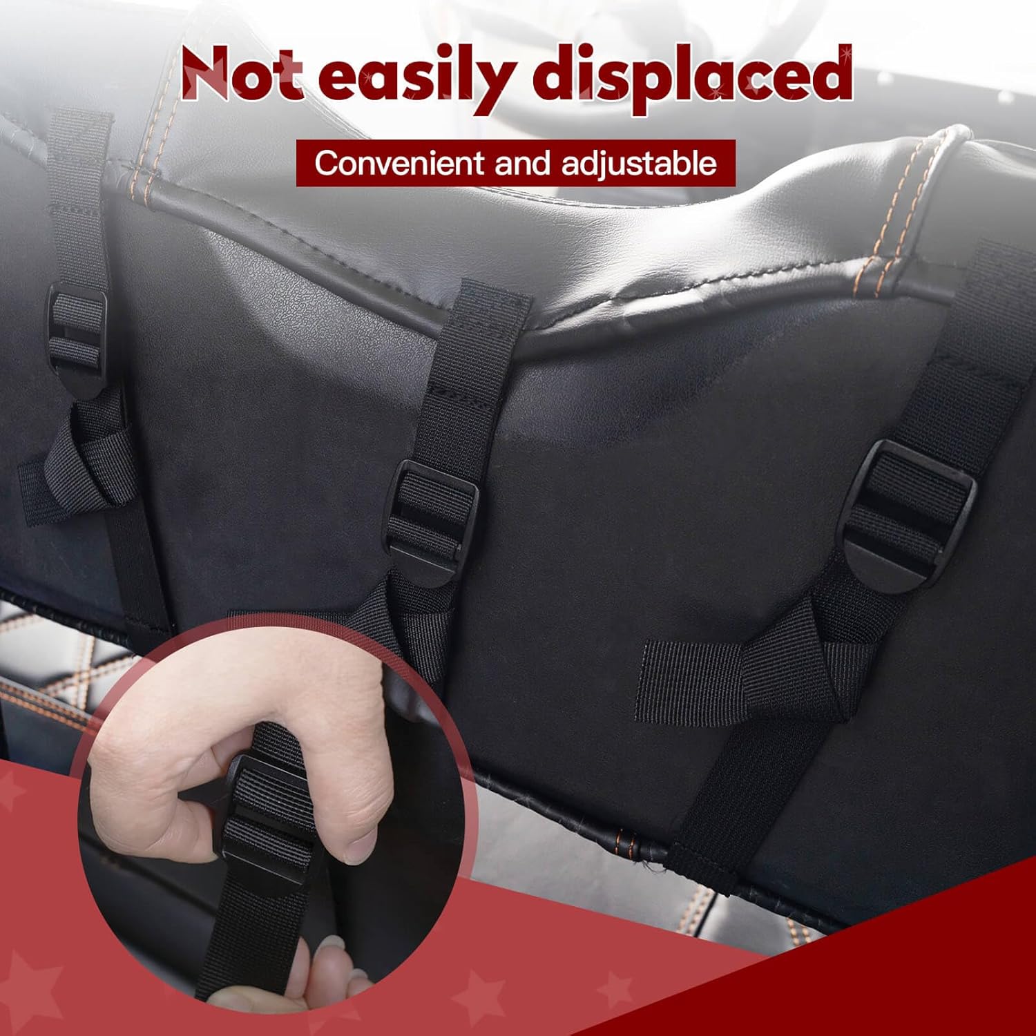 - ăEASY TO INSTALLăGolf Cart Front Seat Covers are pre-made seat covers, no need to use gun studs or remove the old vinyl seat cover, just use this seat cover over the old golf cart cushion, it can perfectly cover the old seat cover of the golf cart. In addition, the adjustable straps and telescopic buckle design help to install and remove easily in minutes.