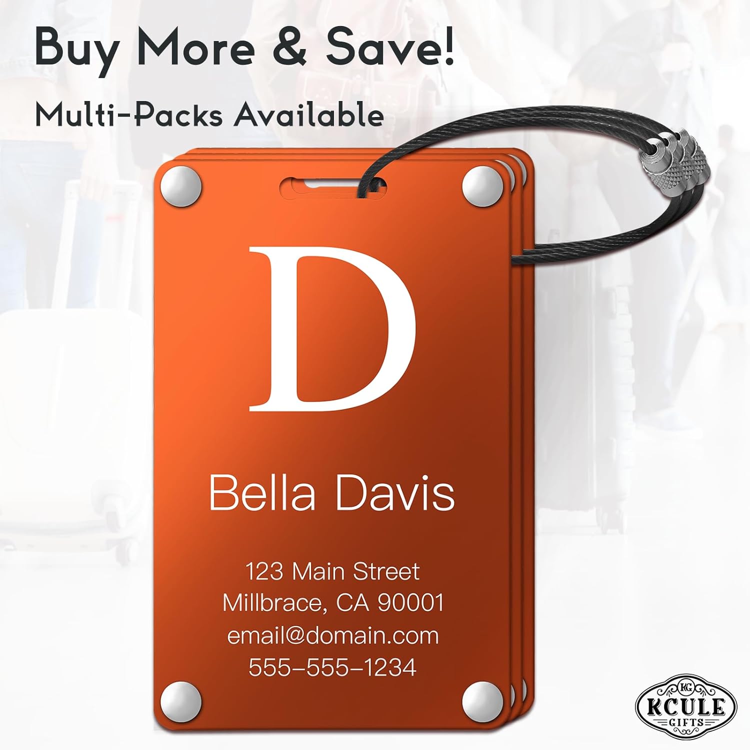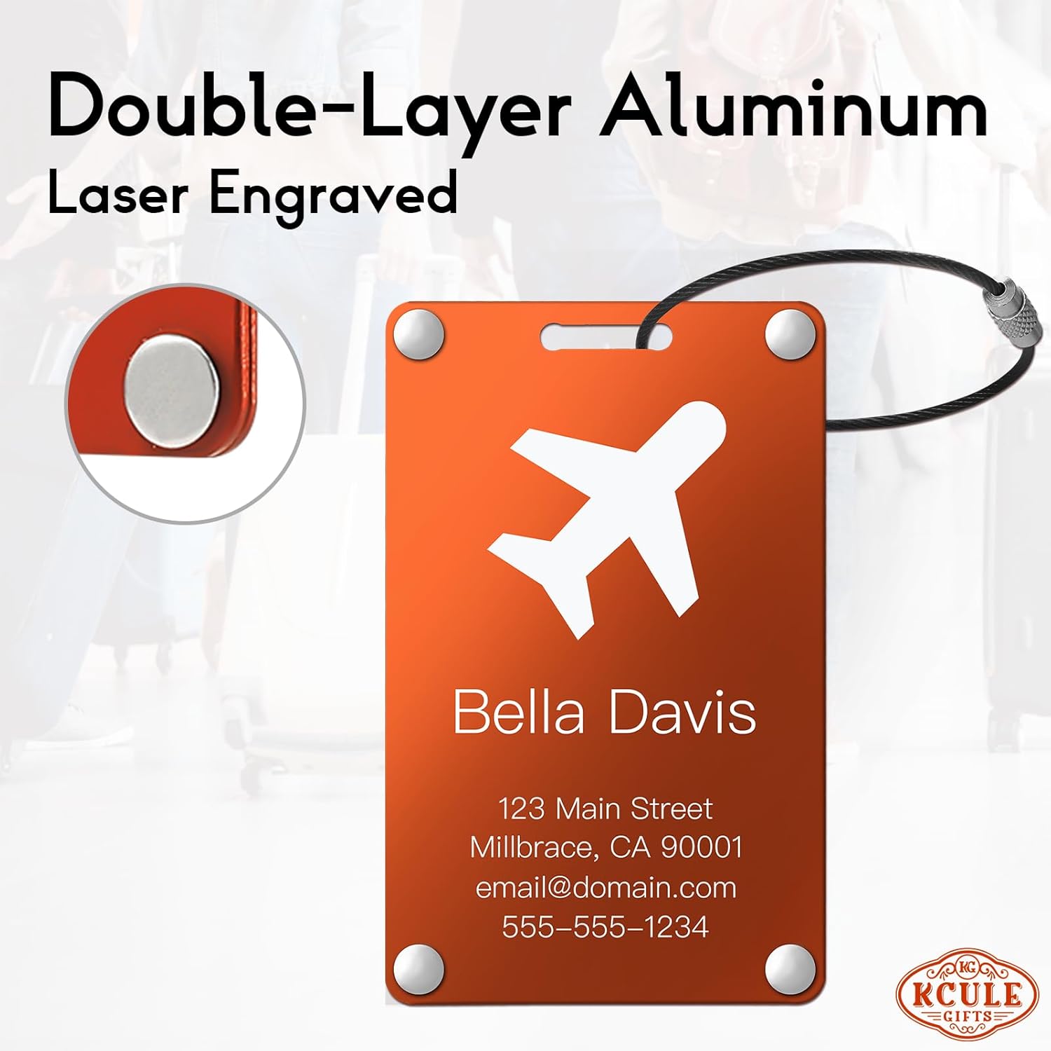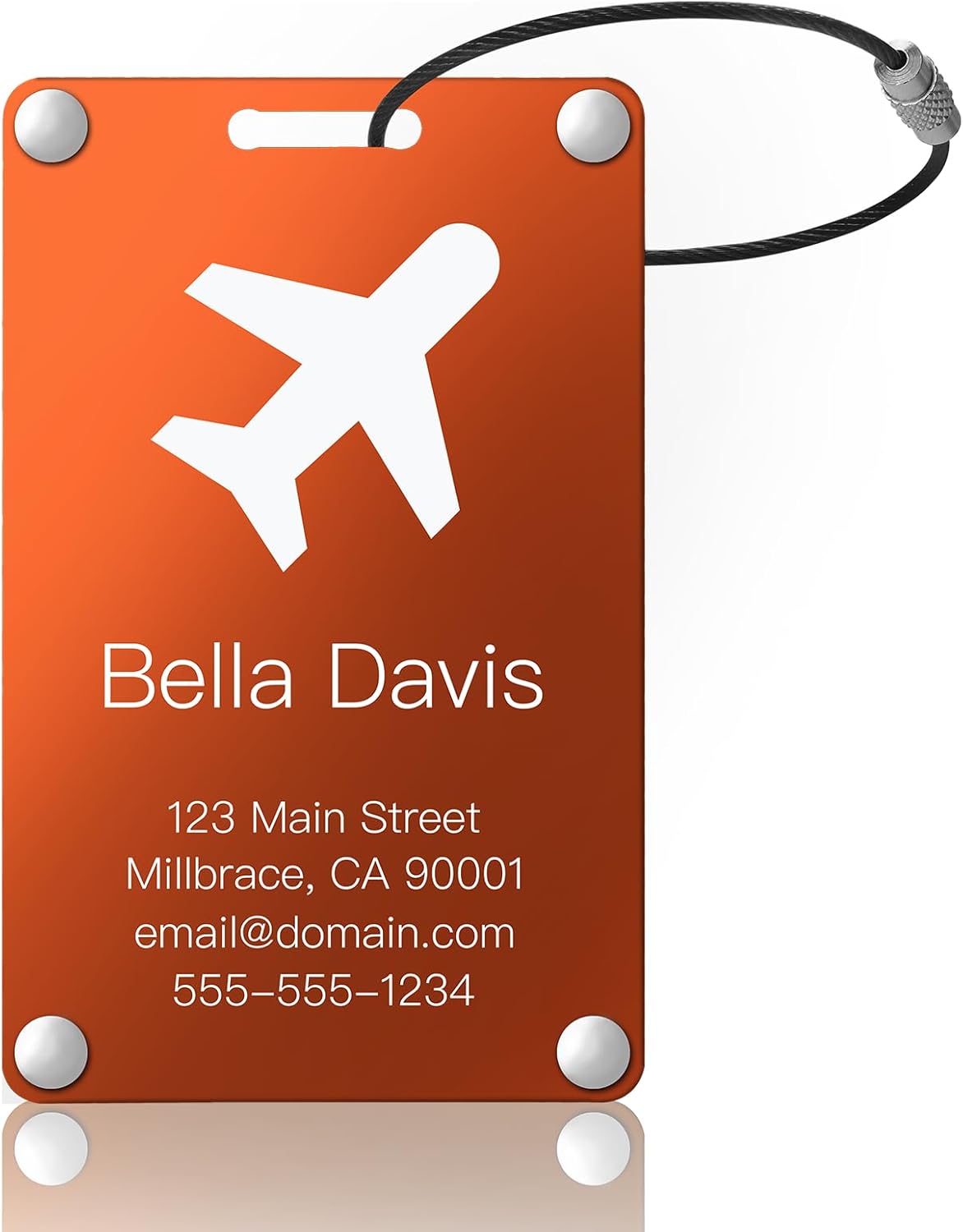 Personalized Luggage Tags: Custom Metal Luggage Tags for Suitcases, Backpacks and Bags with Your Personalized Text (Orange)