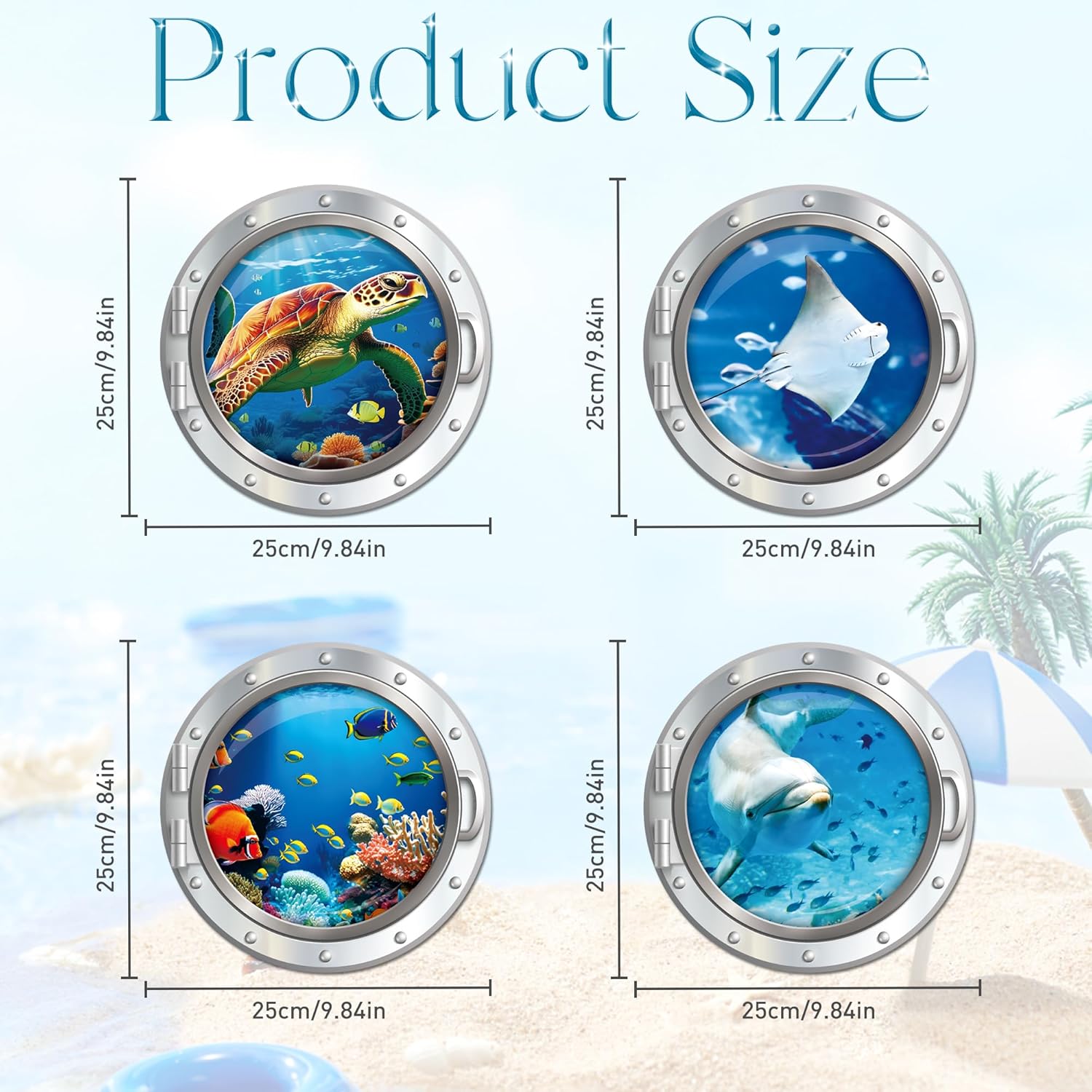 Cruise Ship Door Decorations Magnetic, 4 Pcs Large Porthole Sea Turtle Dolphin Ray Tropical Fish Cruise Magnets, Sea Animals Magnetic Ship Cabin Door Signs Fridge Decor