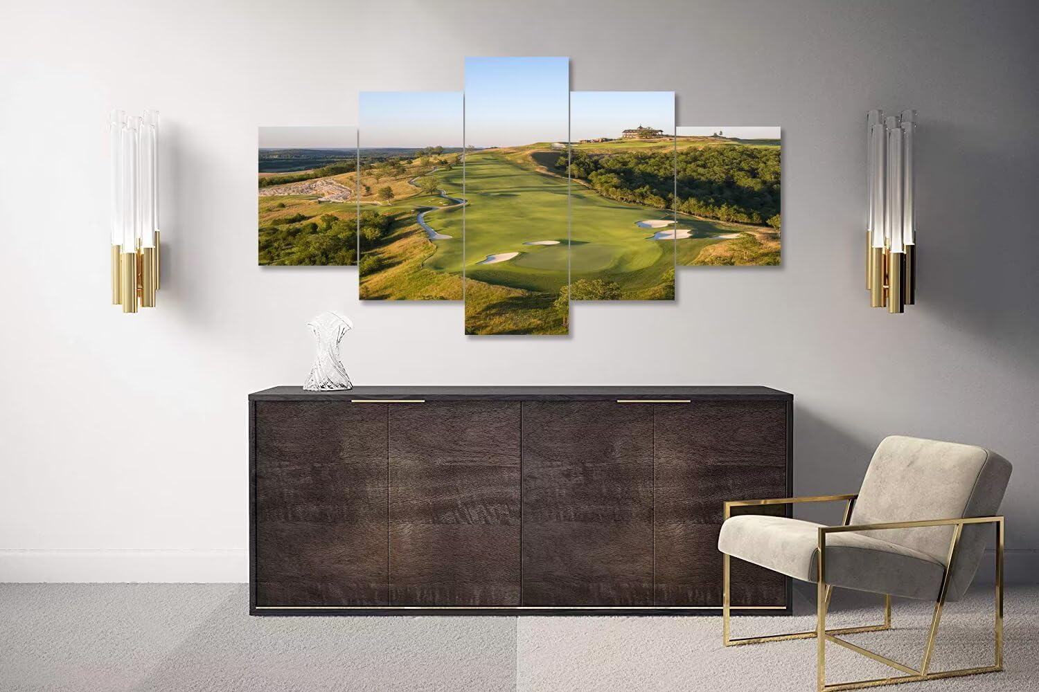- 💝Golf course wall art size: 50Wx24H inch. Each panel size: 10x12inchx2,10x16inchx2,10x24inchx1,golf canvas prints easy ready to hang.