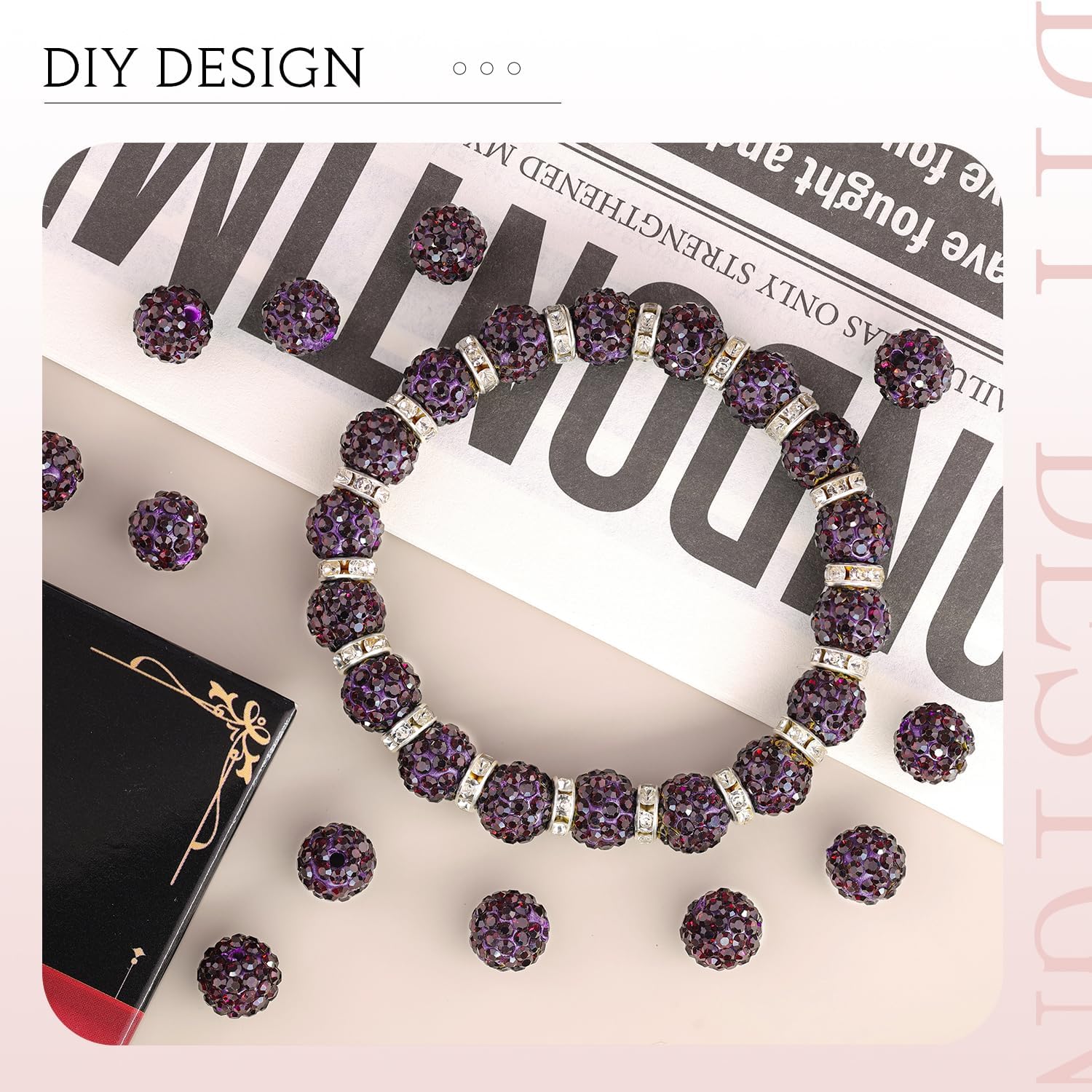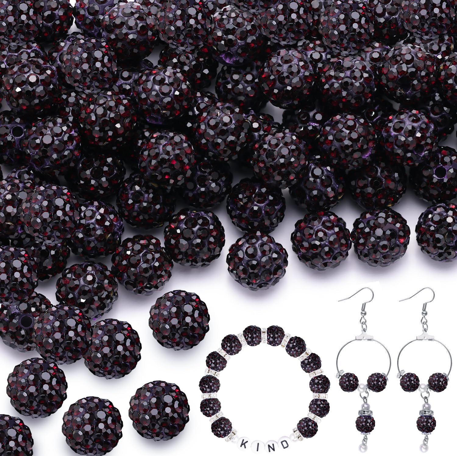 150pcs 10mm Rhinestone Beads for Jewelry Making, Dark Purple Shiny Round Shamballa Disco Beads Bulk, Sparkle Crystal Clay Christmas for Bracelet Baseball Necklace Earring Crafting and DIY
