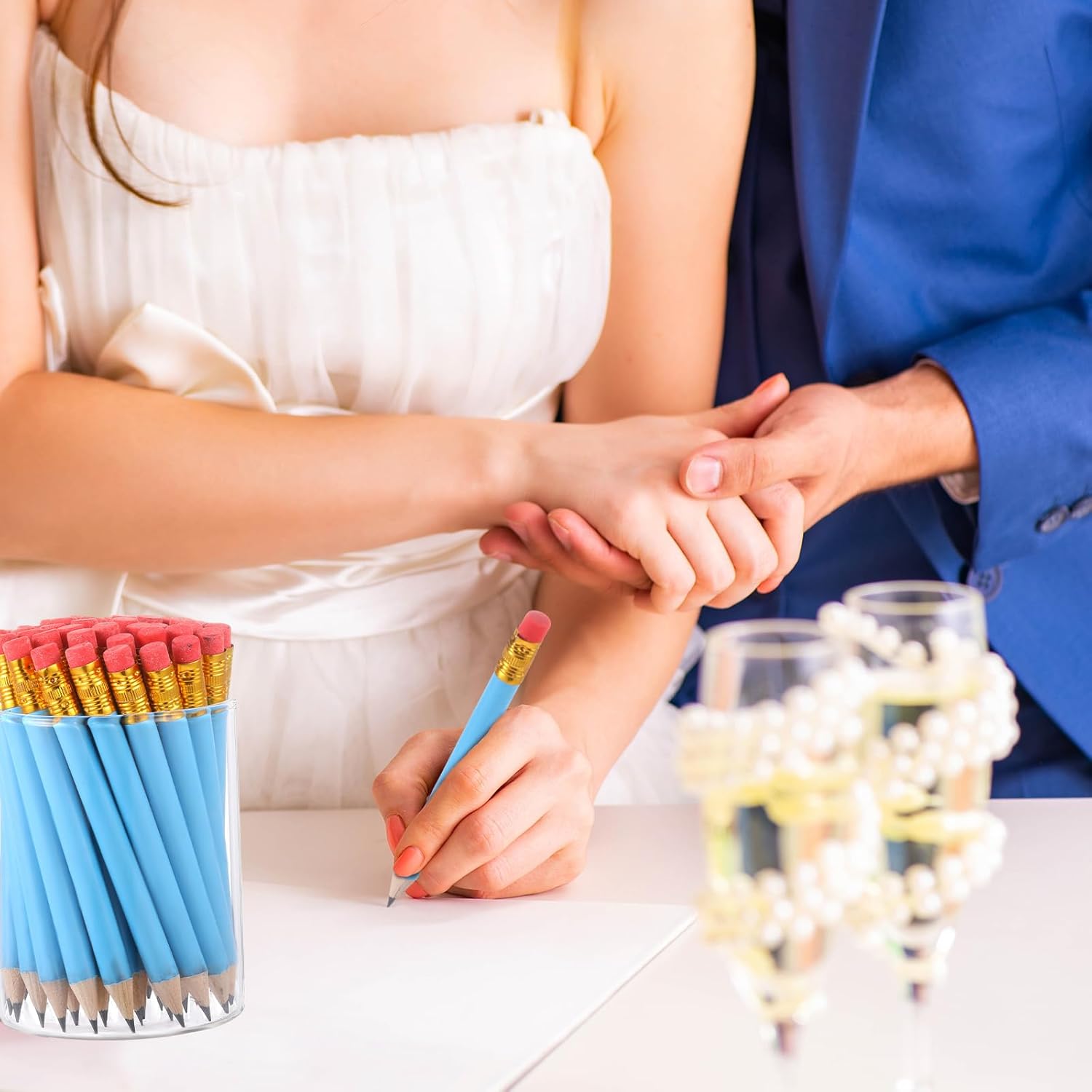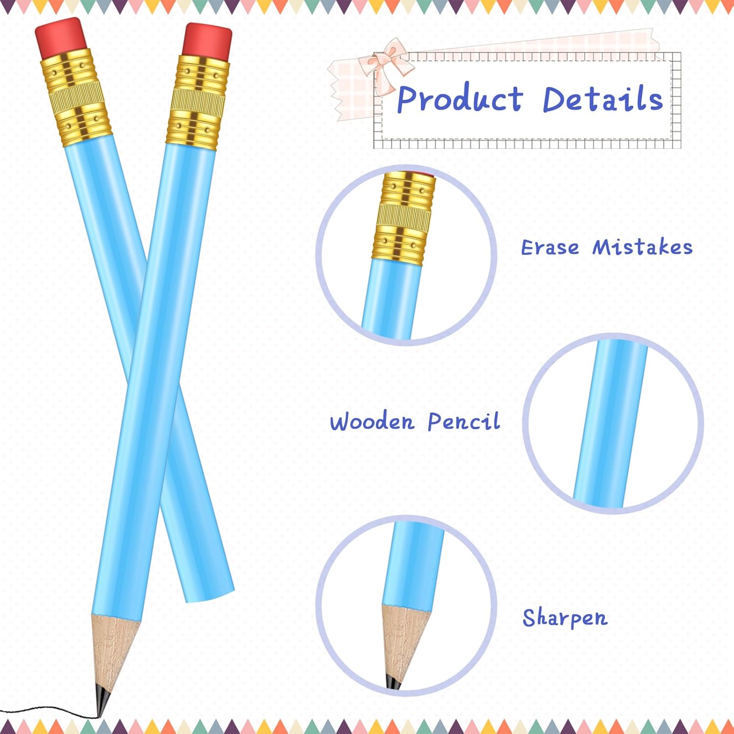 - Thoughtful Design: these bridal shower pencils are designed thoughtfully with classic light blue color, pink eraser and round body, which can be effortless for you to hold, providing you with a smooth writing experience