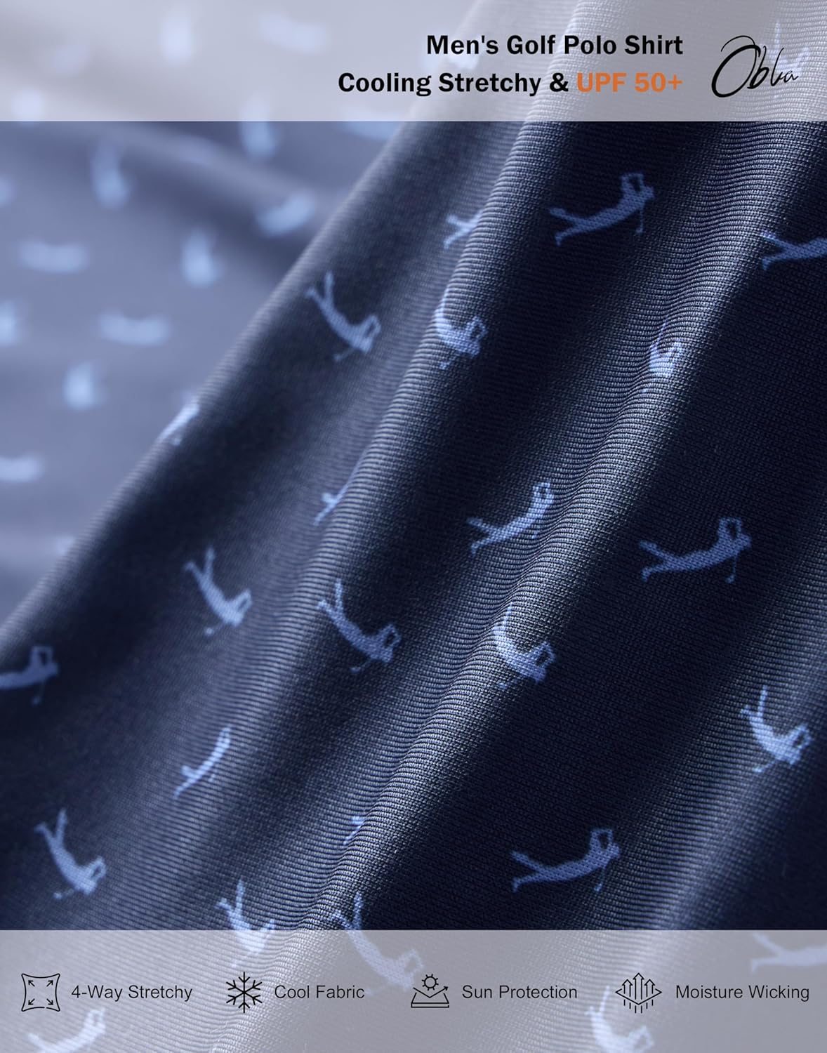 Obla Mens Golf Polo Shirts Short Sleeve Dry Fit Performance Moisture Wicking Casual Print Collared Golf Shirts for Men