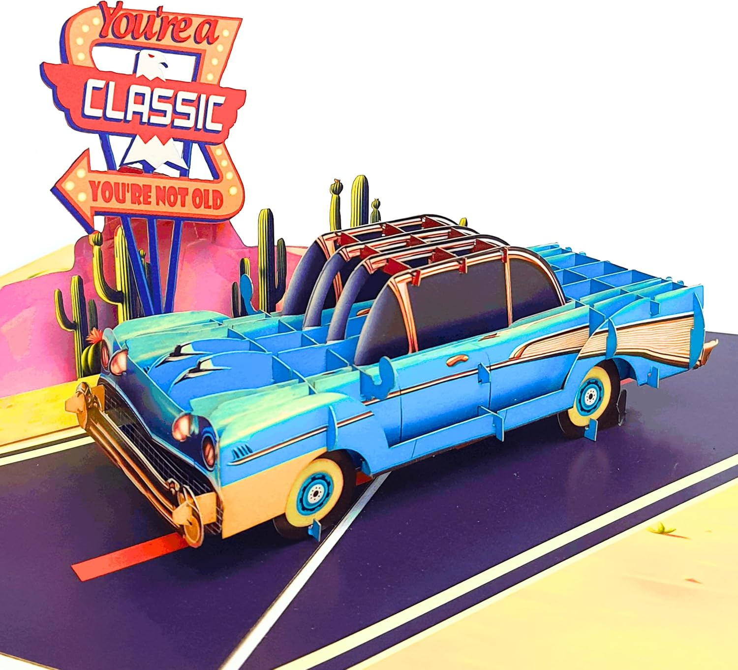 HEARTAGS- Pop Up Birthday Card for Men, Classic Car Birthday Card For Dad, Husband, Brother, Son, Grandpa, 3D Popup Greeting Cards Size 6x8 inches Includes Message Note and Envelop