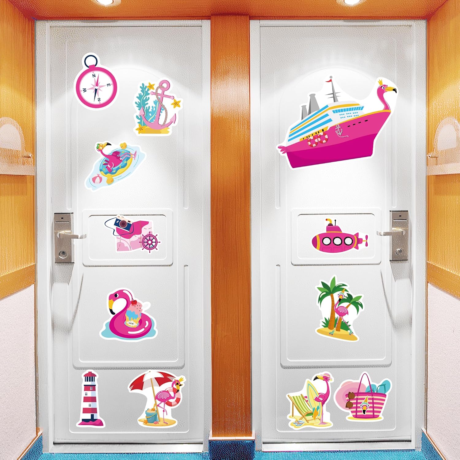 Cruise Door Decorations Magnetic, 12 Pcs Cute Flamingo Tropical Nautical Vacation Cruise Magnets, Fun Cruising Must Haves Magnetic Ship Cabin Door Signs Fridge Decor