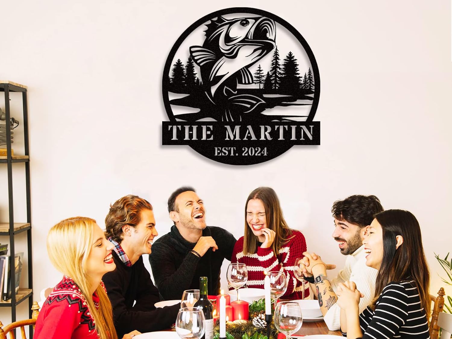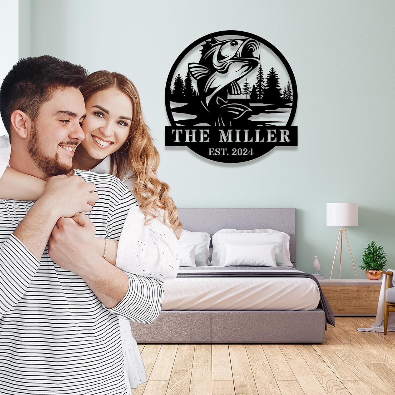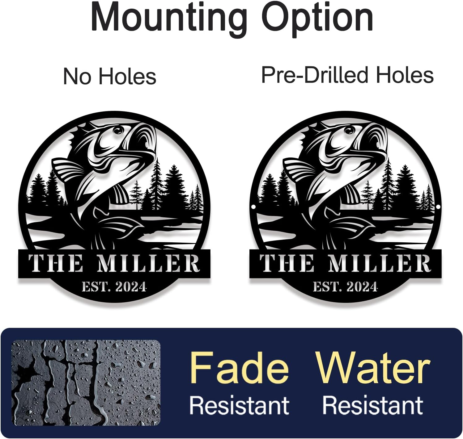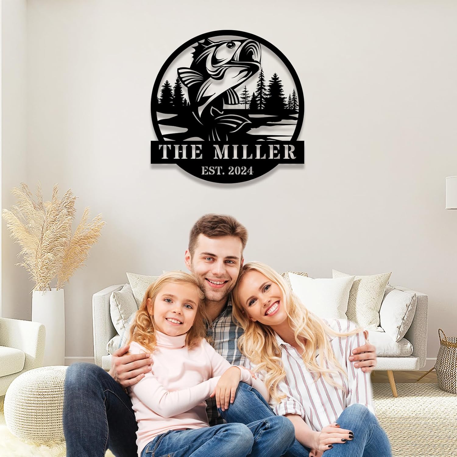 Custom Fish Metal Name Sign, Personalized Family Name Sign, Fishing Gifts for Men, Custom Fishing Metal Sign, Fisherman Gift