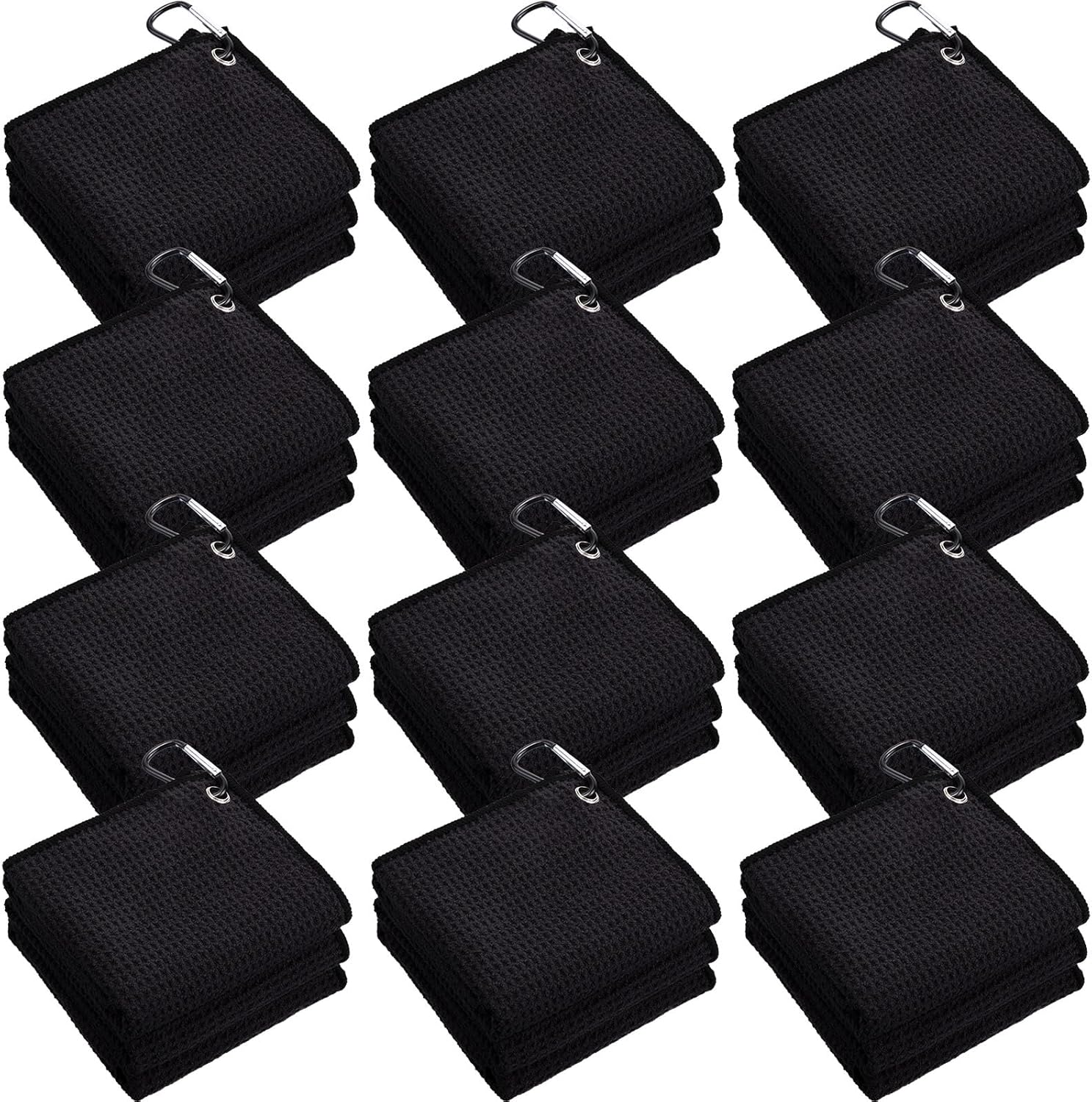 Batiyeer 12 Pcs Golf Towel Bulk for Golf Bags 16'' x 16'' Microfiber Fabric Towel with Clip Waffle Pattern, Fitness, Camping, Hiking, Yoga
