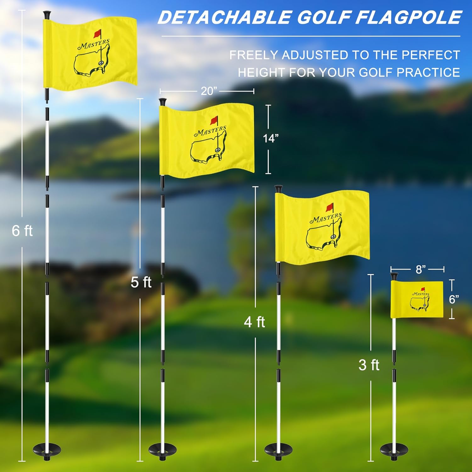 Golf Flagpole - Detachable Design - Ball Retrieval Base - Perfect for Backyard Practice Putting Green, Country Club, Driving Range - 3FT | 6FT in Height Optional