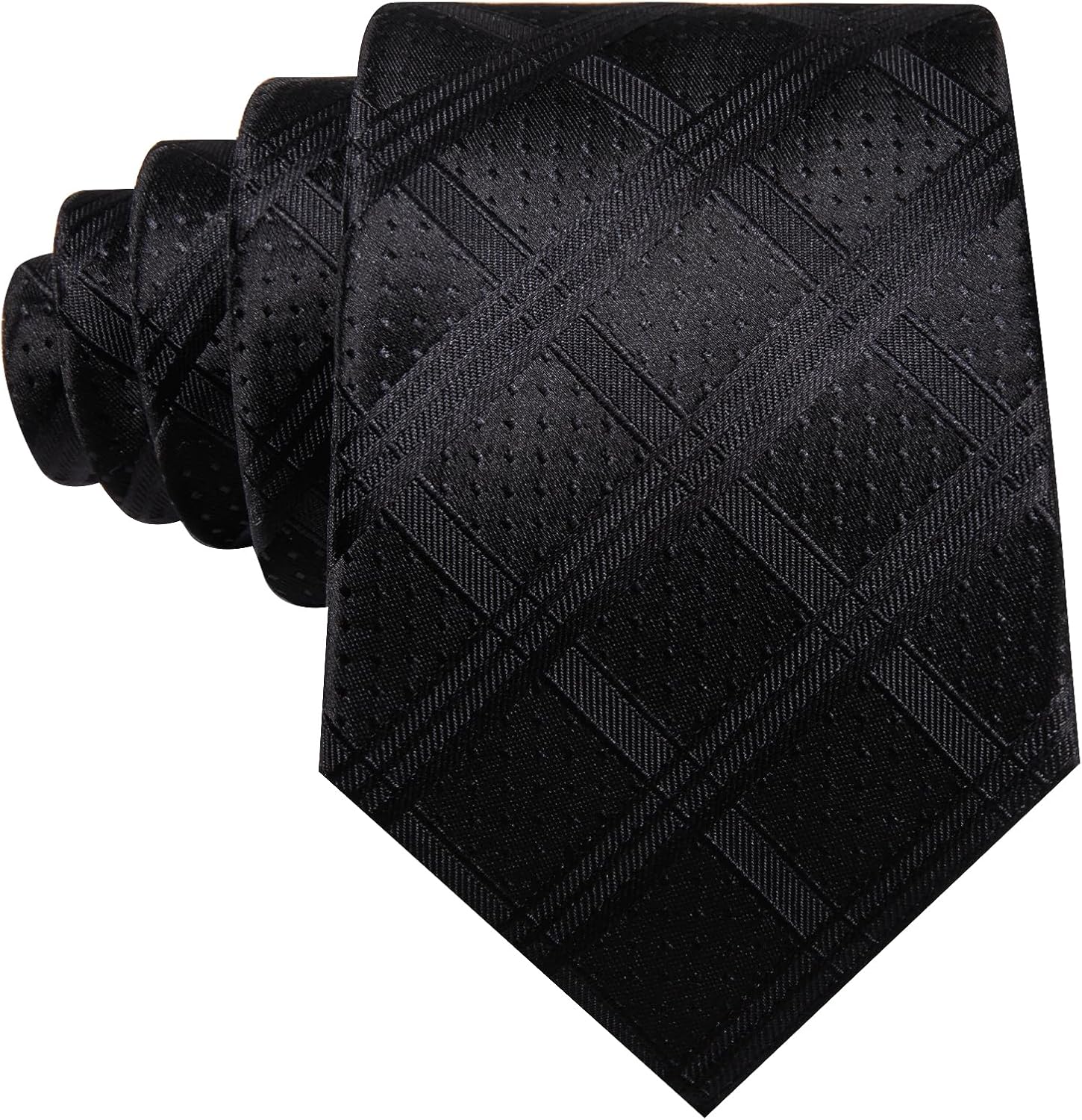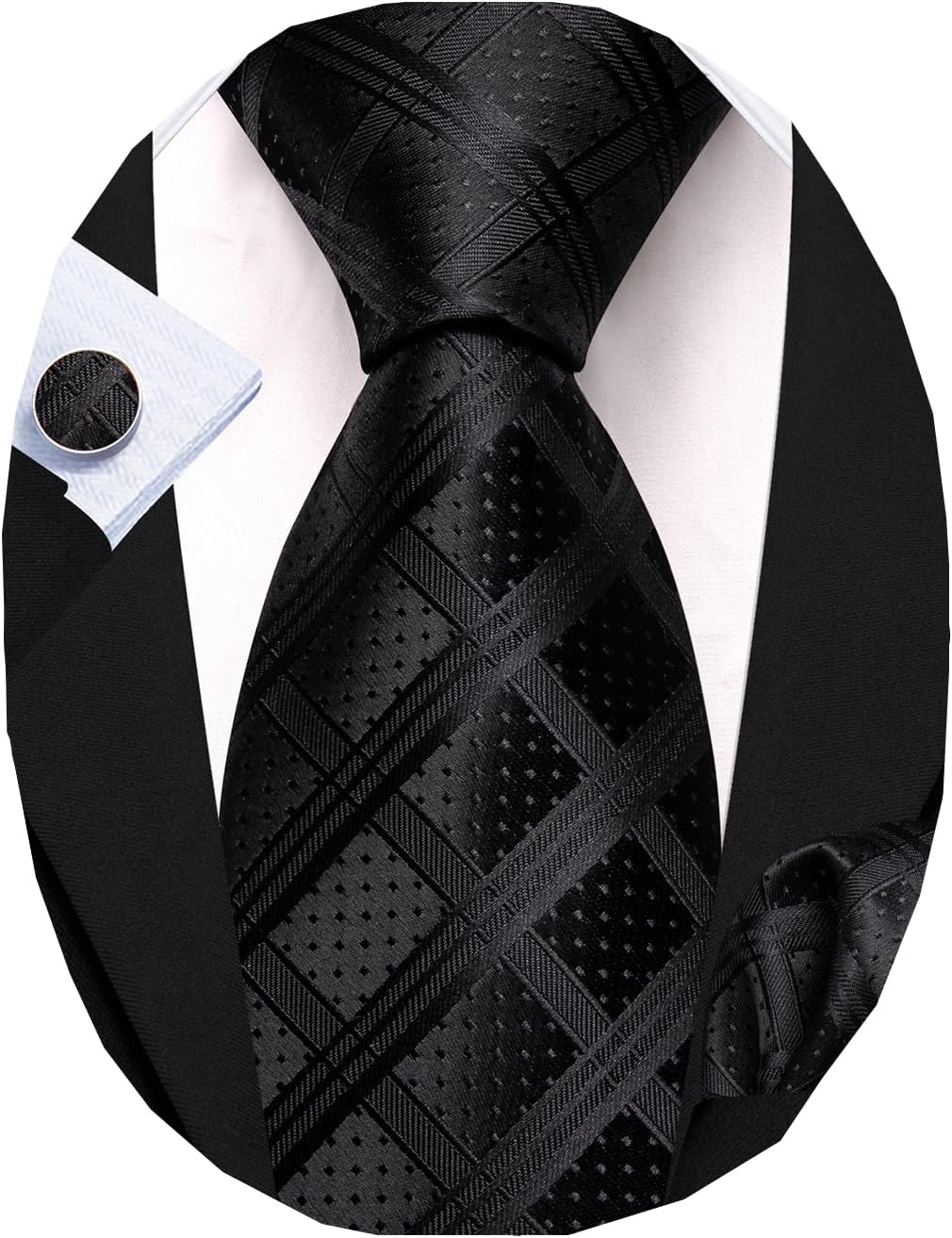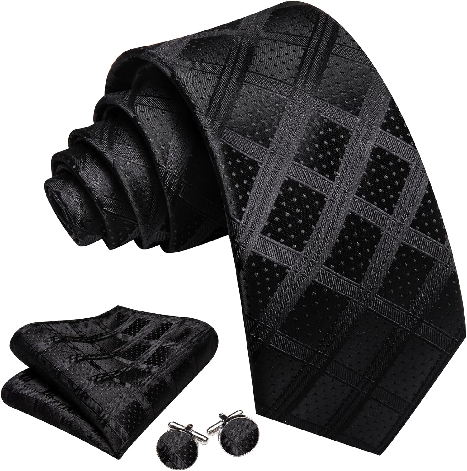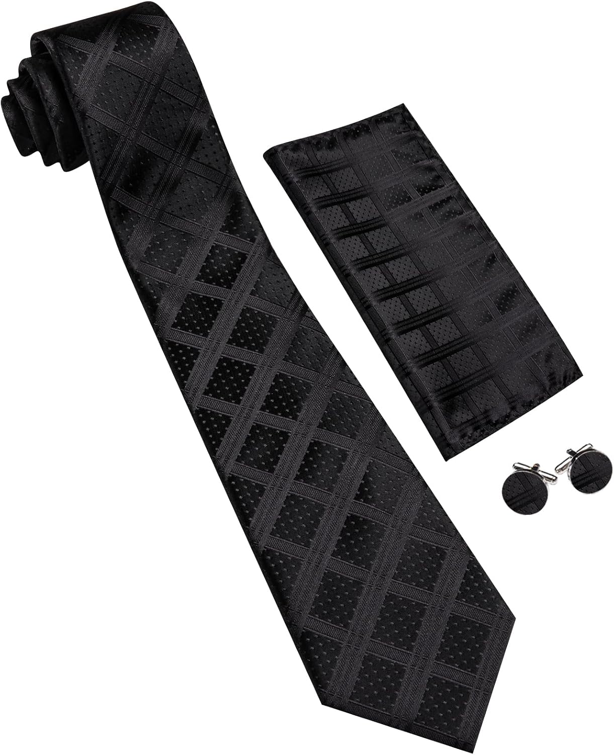 Barry.Wang Designer Classic Ties for Men Set Formal Pocket Square Cufflink Check Plaid