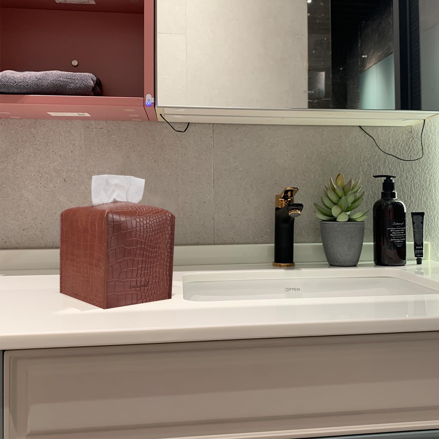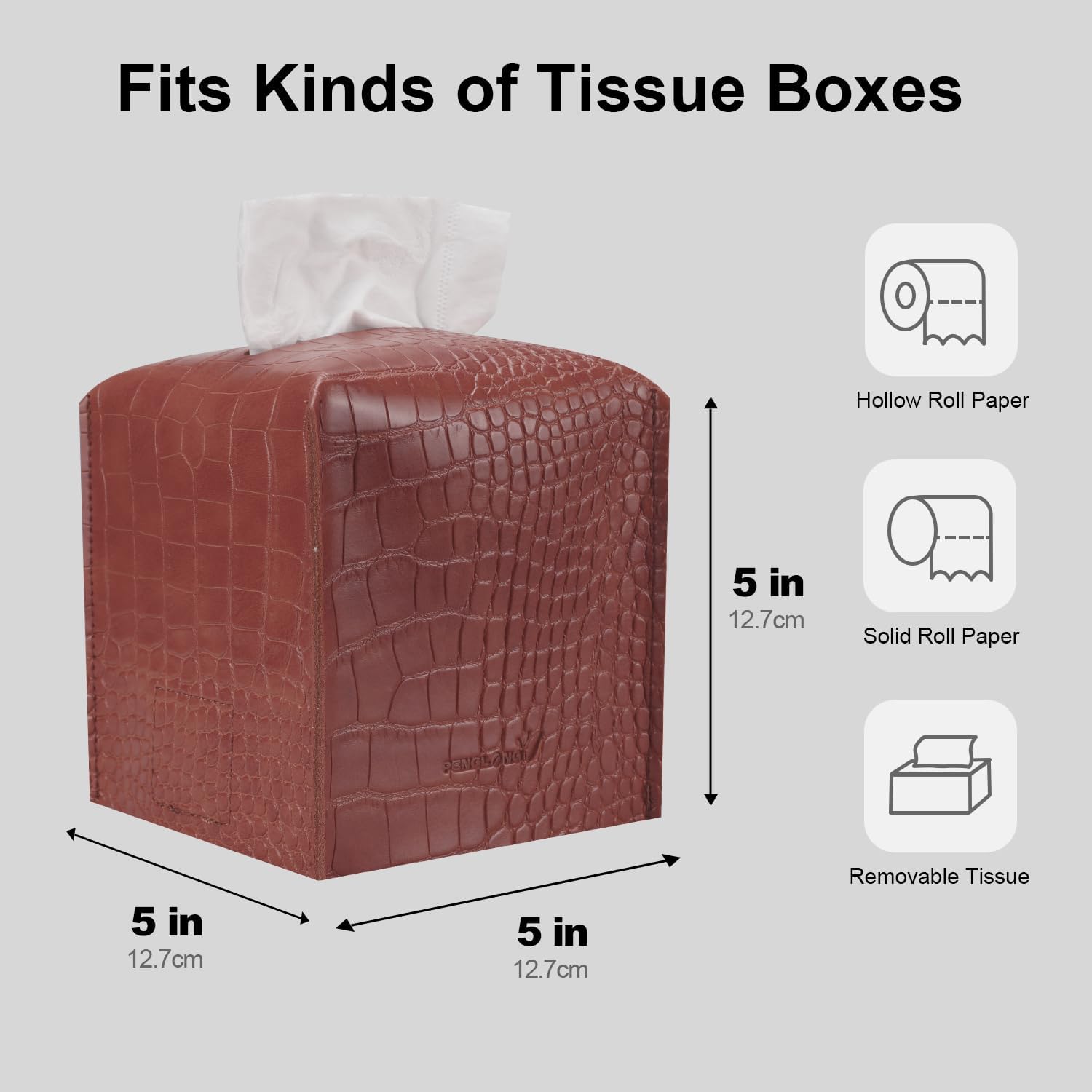 Tissue Box Cover 5X5X5'' PU Leather Tissue Holder Square Tissue Cube Box Organizer for Bathroom Vanity Countertop, Car, Night Stands, Office, Home, Kitchen (SnakeBrown, 1Pack)