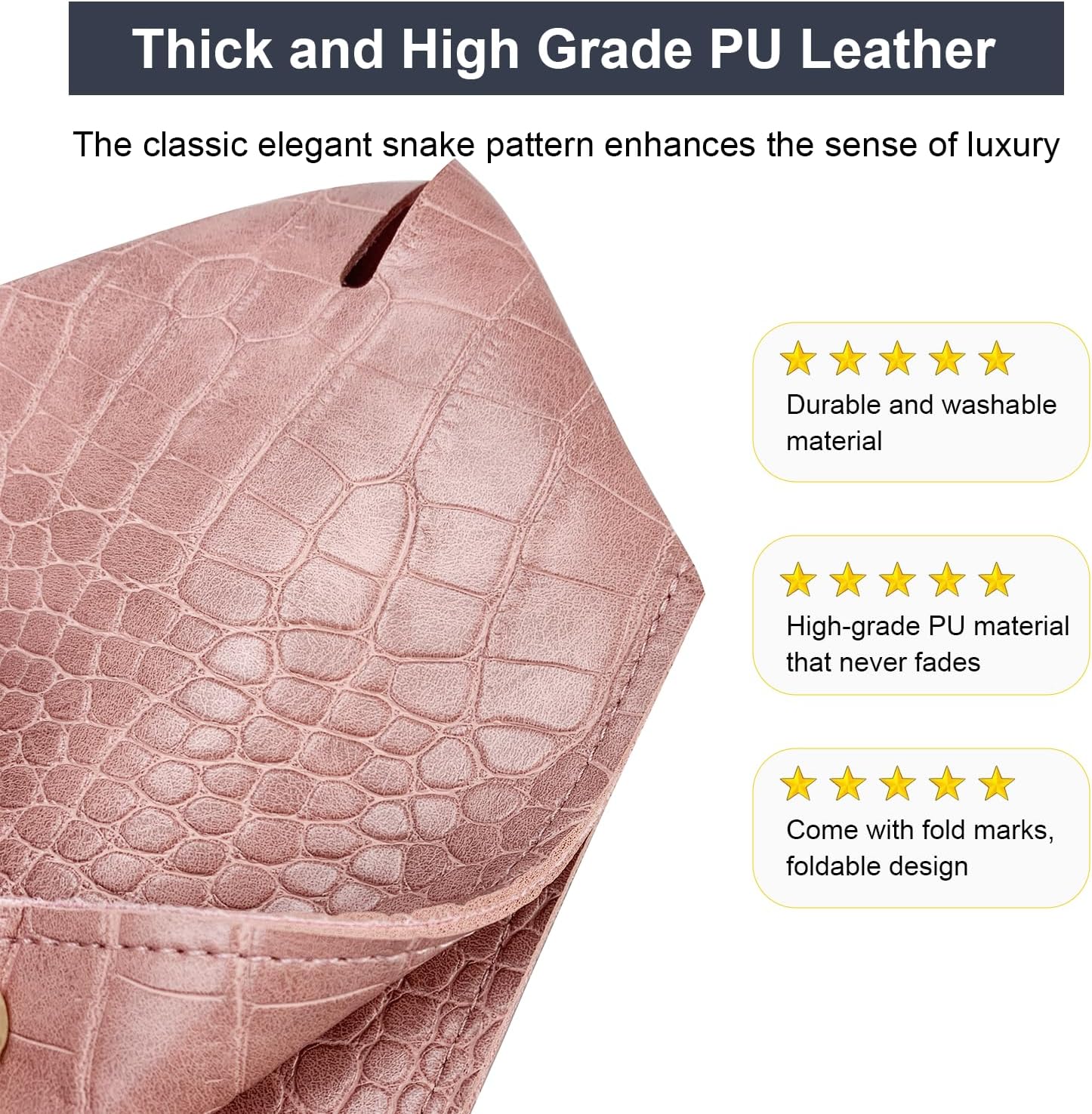 Tissue Box Cover 5X5X5'' PU Leather Tissue Holder Square Tissue Cube Box Organizer for Bathroom Vanity Countertop, Car, Night Stands, Office, Home, Kitchen (SnakePink, 1Pack)