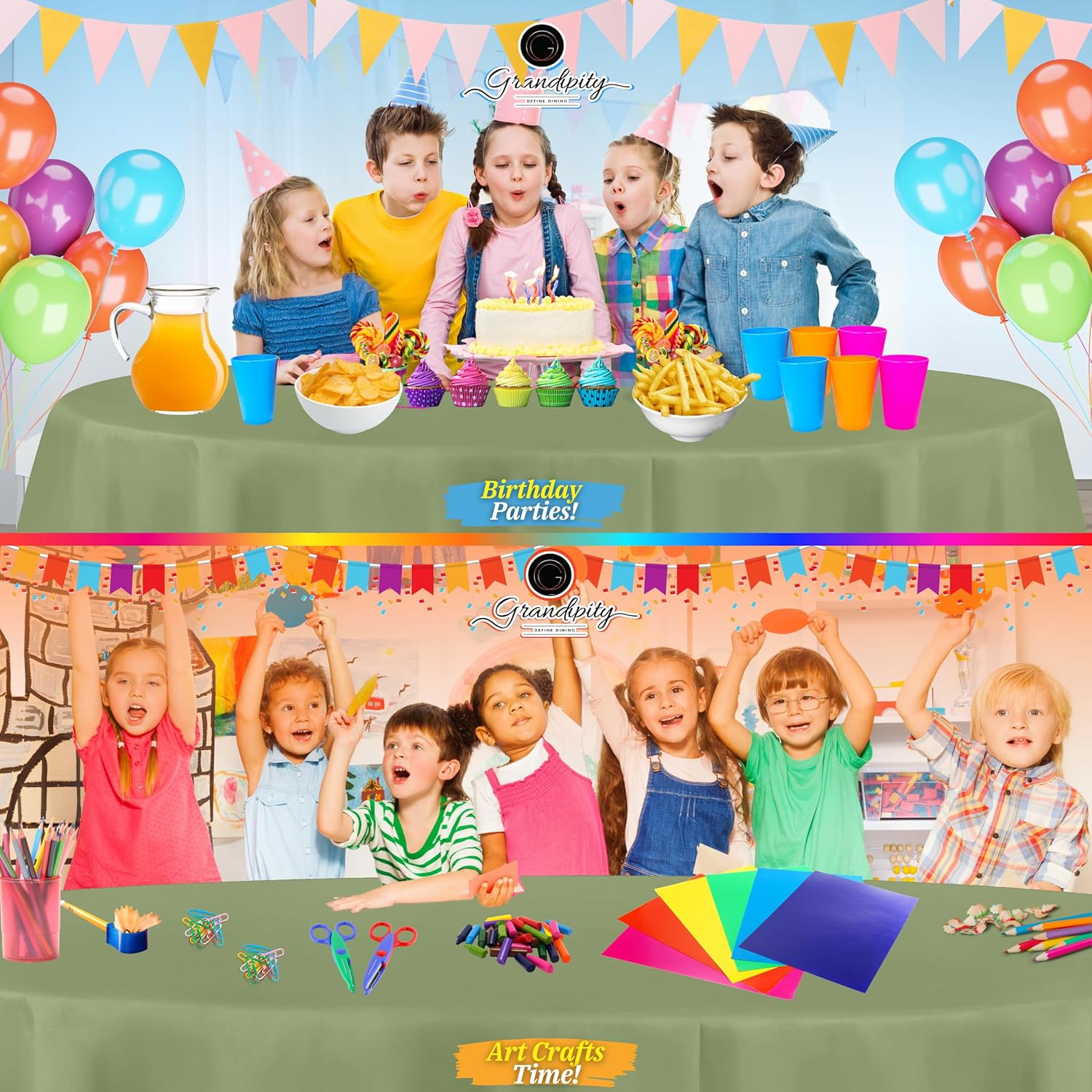 - ๐ EASY CLEAN UP: These disposable round tablecloths are great at picking up any messy spills from food, drinks, paint from arts and crafts sessions and more! Whatโs better? Theyโre completely disposable so enjoy the party without the hassle of cleaning up.