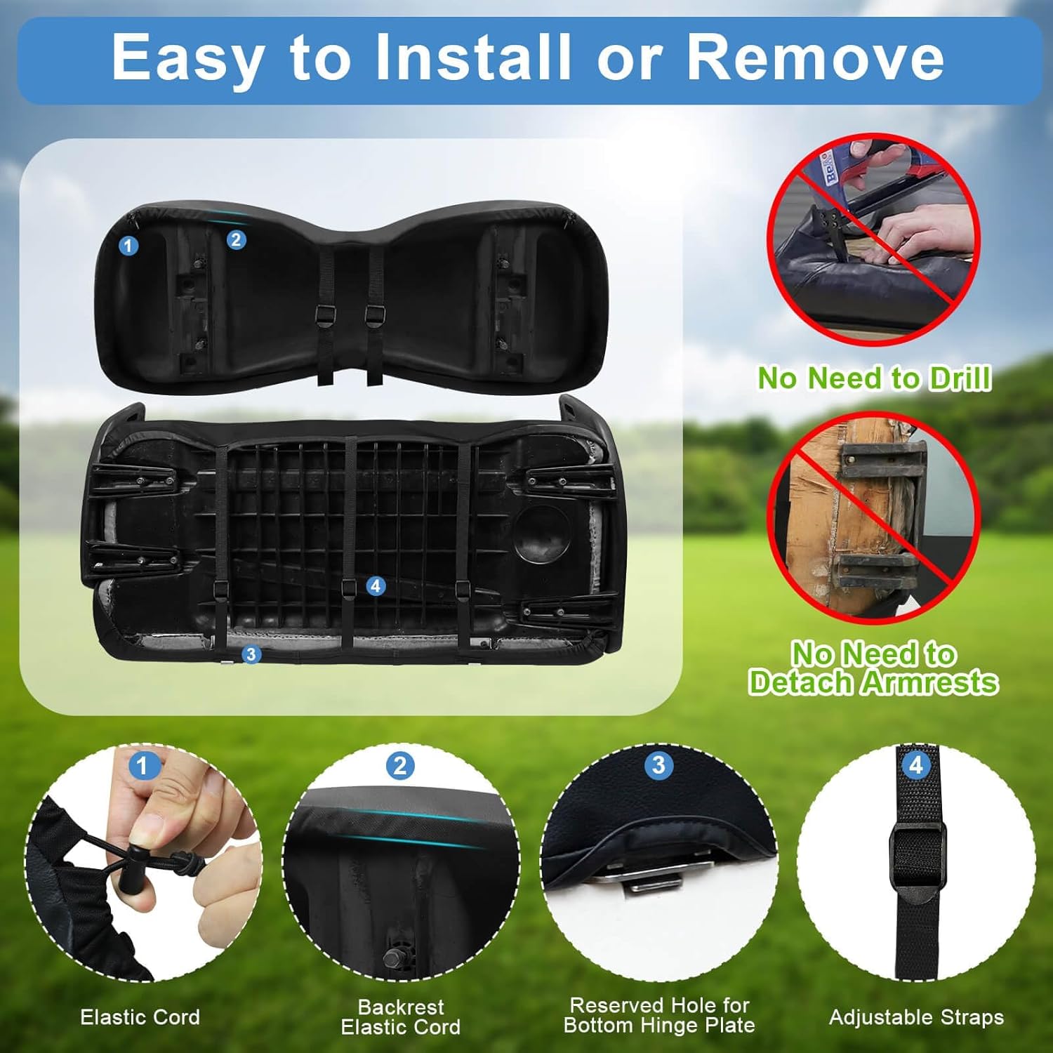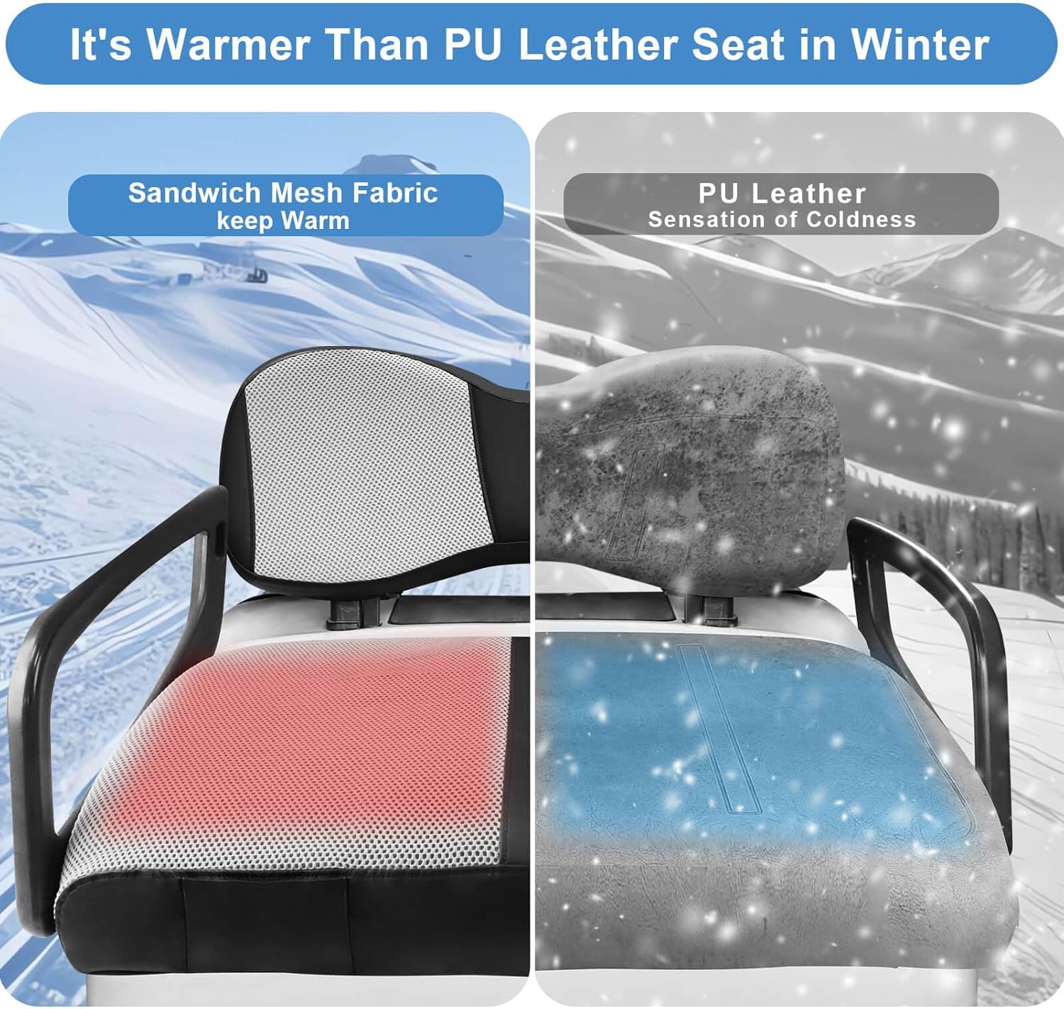 MOSNAI Yamaha Golf Cart Front Seat Cover for Drive G29 2007-2016 OEM Ordinary Seat Cushion, Breathable Polyester Mesh Cloth and Leather Combination Appearance, No Need Detaching Armrests