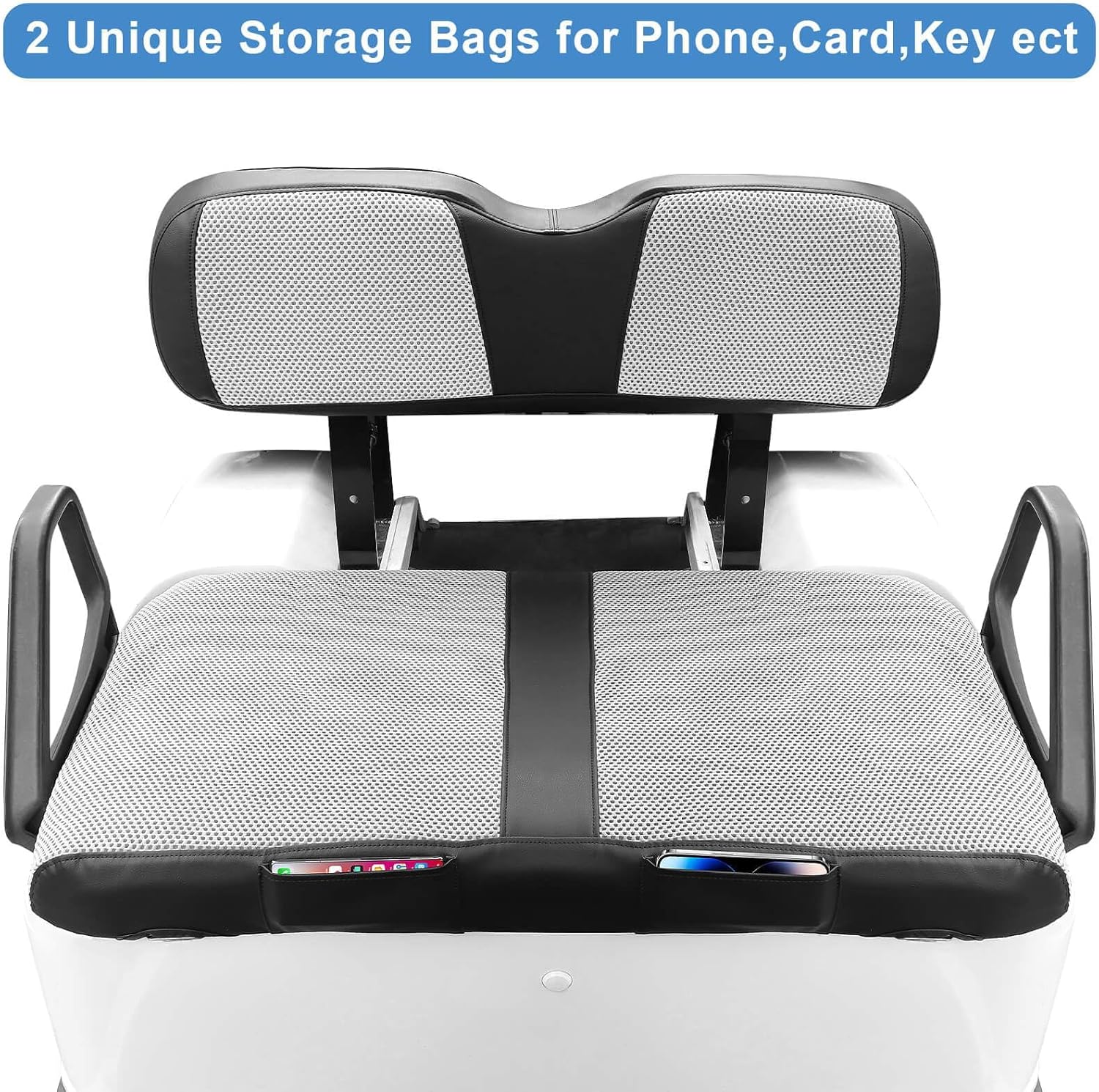 - 2 Pockets: EZGO TXT golf cart seat cover with two pockets at the front, perfect for conveniently storing keys, cards, Phone and other essential items.