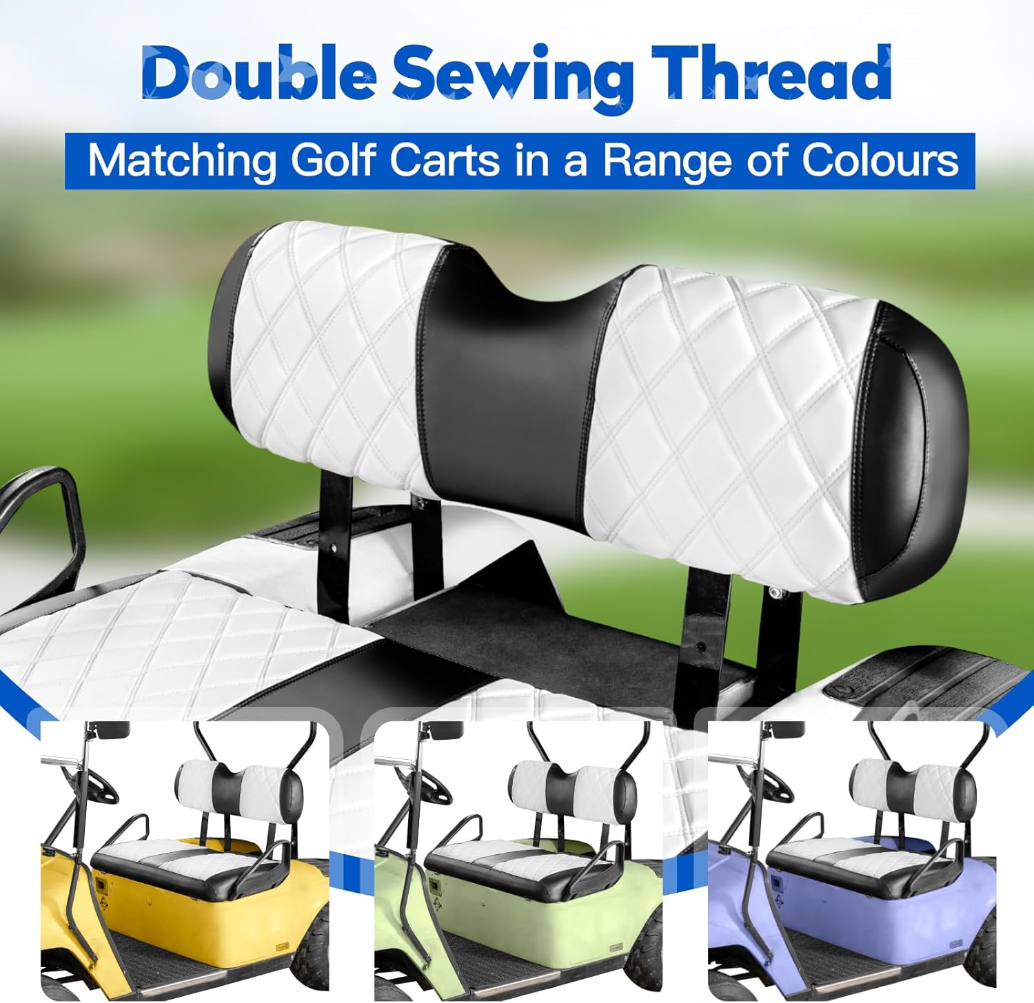 - 【Diamond Appearance Design】Golf cart front seat cover with diamond appearance design adds a touch of luxury and elegance to your golf cart, which will surely turn heads on the course. Premium and durable PVC vinyl leather brings ultimate enjoyment and comfort to your golf cart.