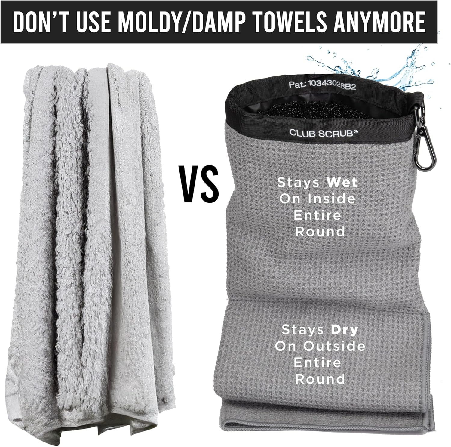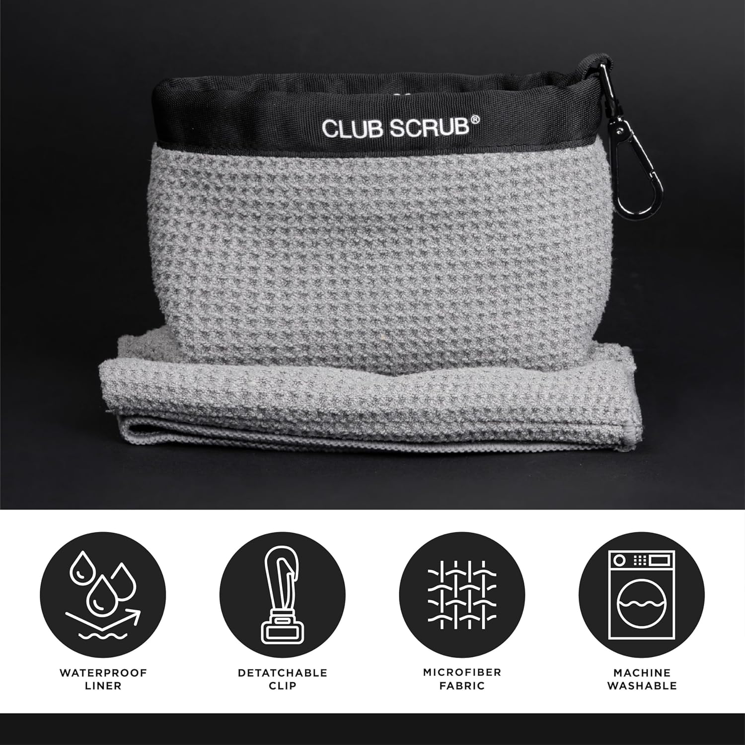 Club Scrub Towel Pro, Golf Club and Ball Cleaning Pouch with Attached Towel, Waterproof Exterior, Clean Face Technology Liner, Machine Washable, Cleans Club Grooves, Waffle-Weave Microfiber