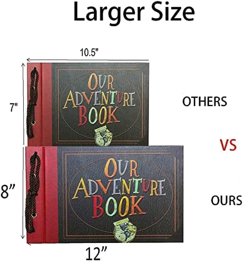 Adventure Book Scrapbook DIY Handmade Retro Style Travel Souvenir, 11.92 x 7.62" Embossed Lettering Scrapbook Inspired by 'Up', Memory Book For Anniversary Wedding,Travelling,Valentine's Day Gifts