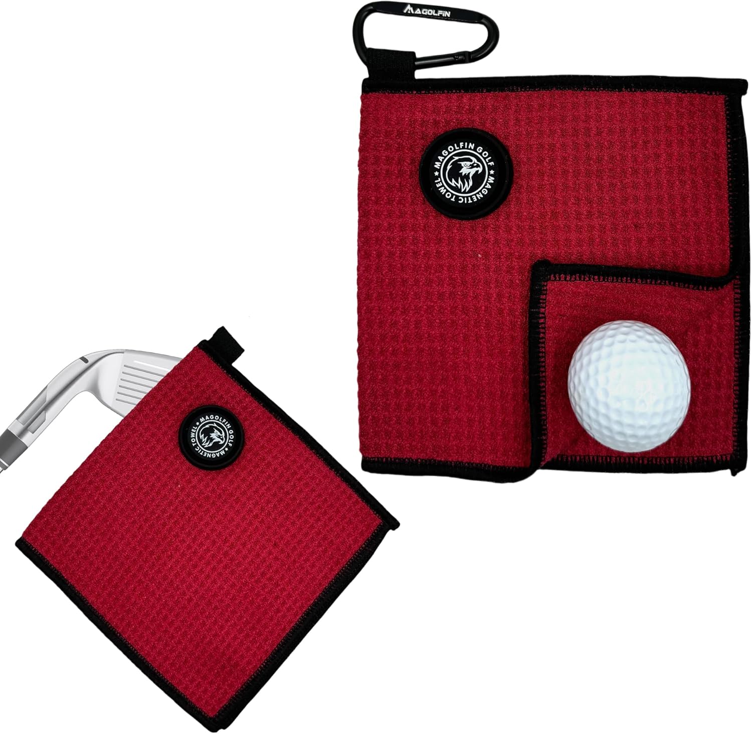- 【Non-Abrasive Waffle Grid Golf Towel】- Our golf towel is non-abrasive and won't wear out your golf bag. The soft waffle weave fabric is lightweight, scratch-resistant, and does not shed. The golf towel is machine washable, fade-resistant, and wrinkle-free. Magolfin golf towel boasts an eye-catching design on the golf course.