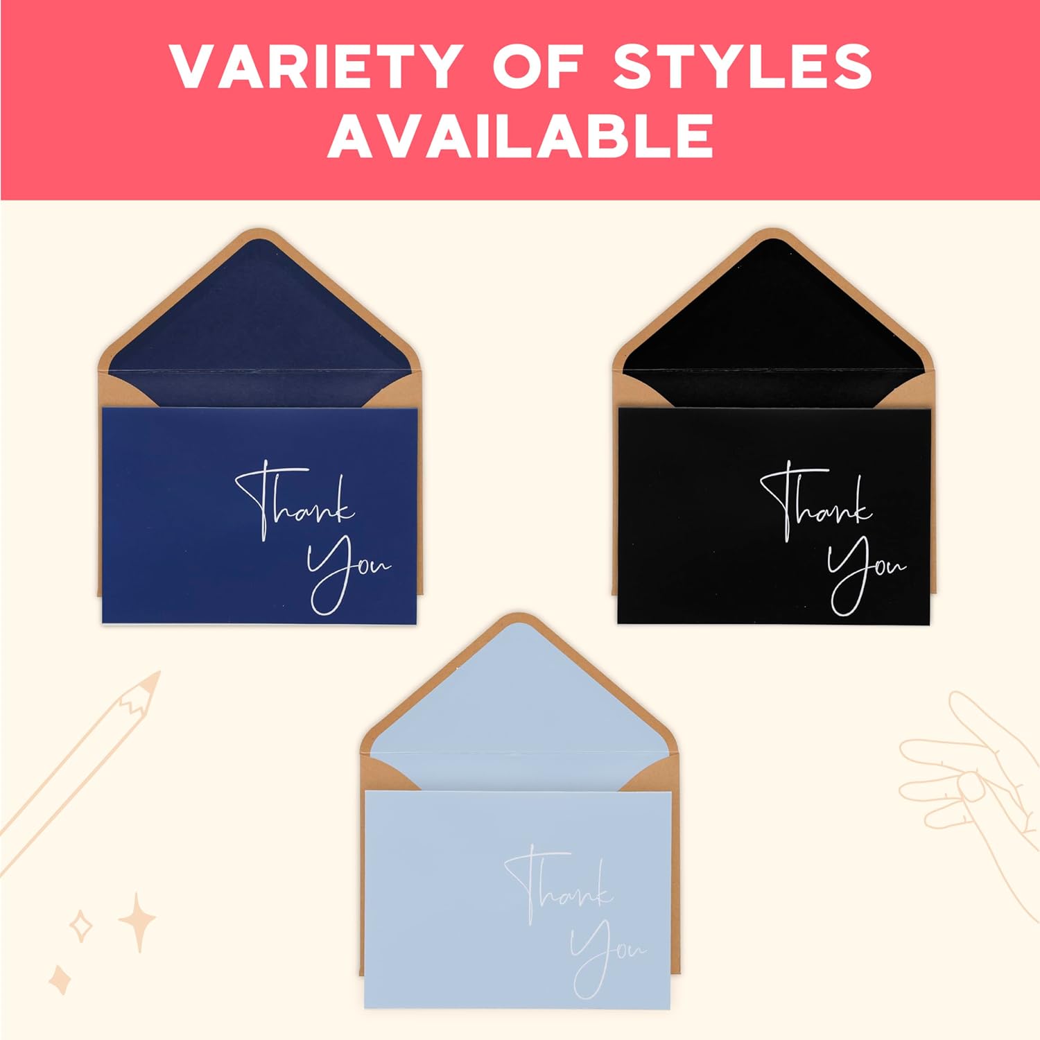 - Classy design for any occasion: Each box set of 20 thank you cards come with matching lick-to-seal sturdy kraft envelopes with a blue interior lining as well as a matching themed sticker to seal the envelope and tie it all together. Be sure to always have a pack of greeting cards on hand, whether you need to thank a friend, send a special note, or make some staff appreciation cards!