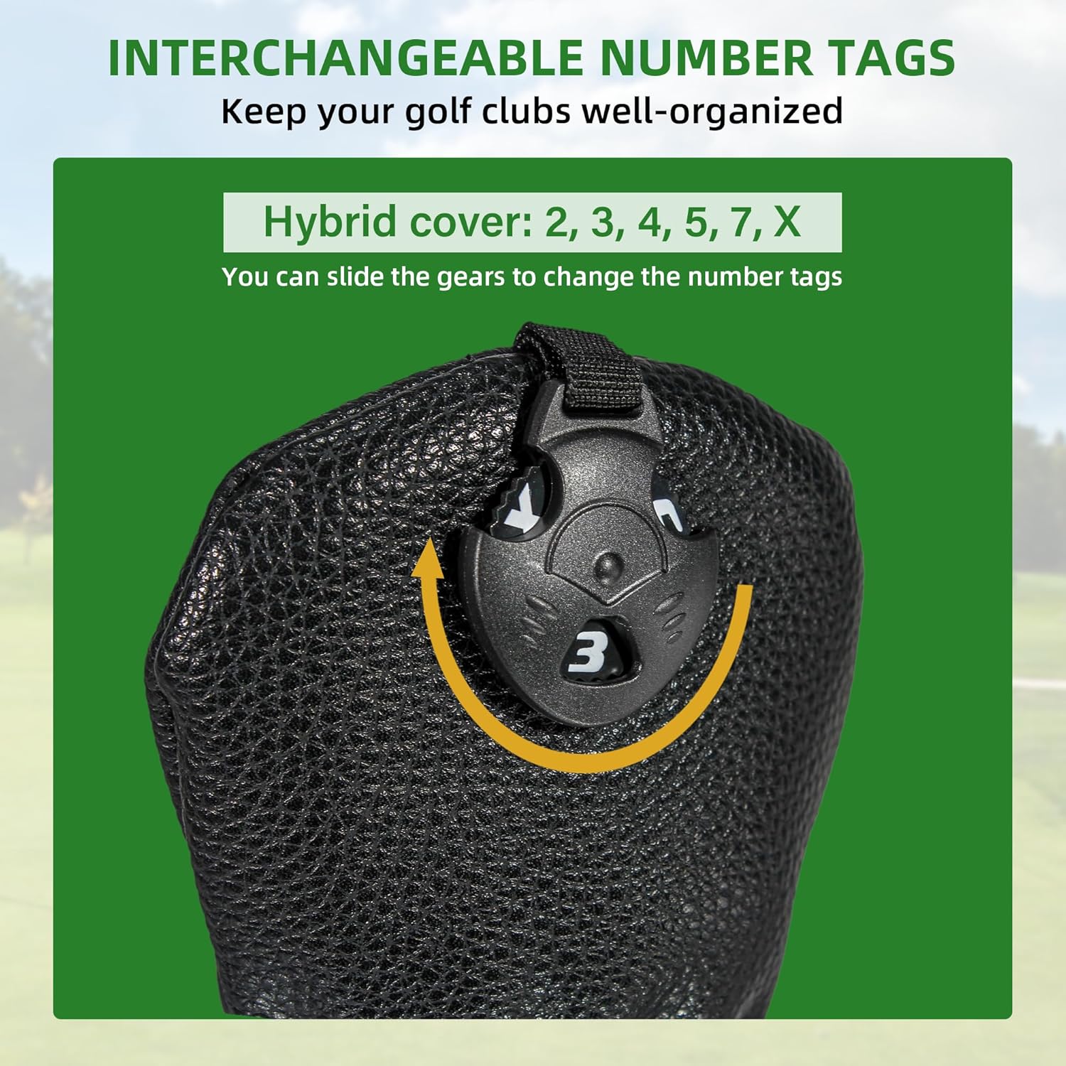- Interchangeable Number Tags: The hybrid headcover come with an adjustable ID tags for 2 3 4 5 6 Ut,prevent confusing club and easy to use.
