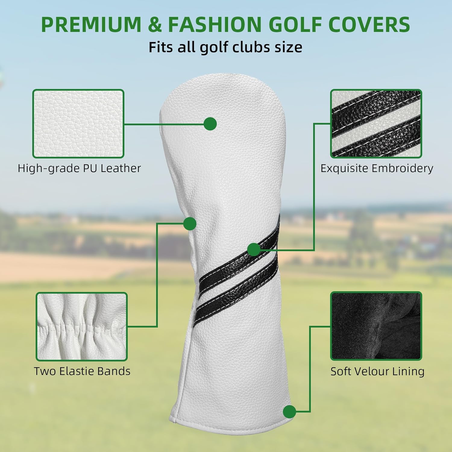 Golf Club Head Covers - 4pcs or 1pc Golf Accessories Club Covers Set for Woods and Driver Fairway Hybrids with Interchangeable Tags
