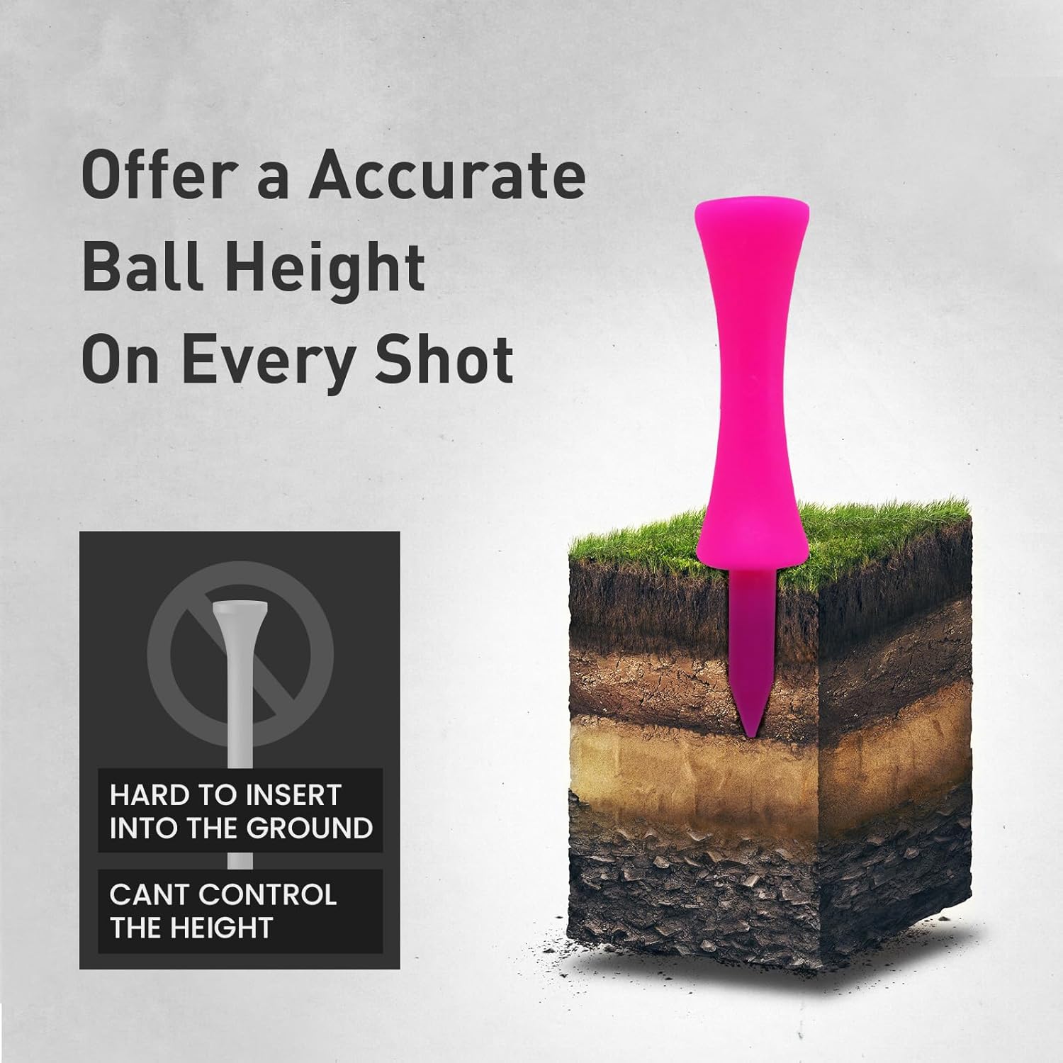 - Easy to Use: Easy to Push Into the Ground, Easy to Quickly Tee Up the Ball, Stable to Hold the Ball, and Won't Fall Off. Perfect for the Driver, Woods, and Irons to Get the Same Elevation on the Ball Time After Time.