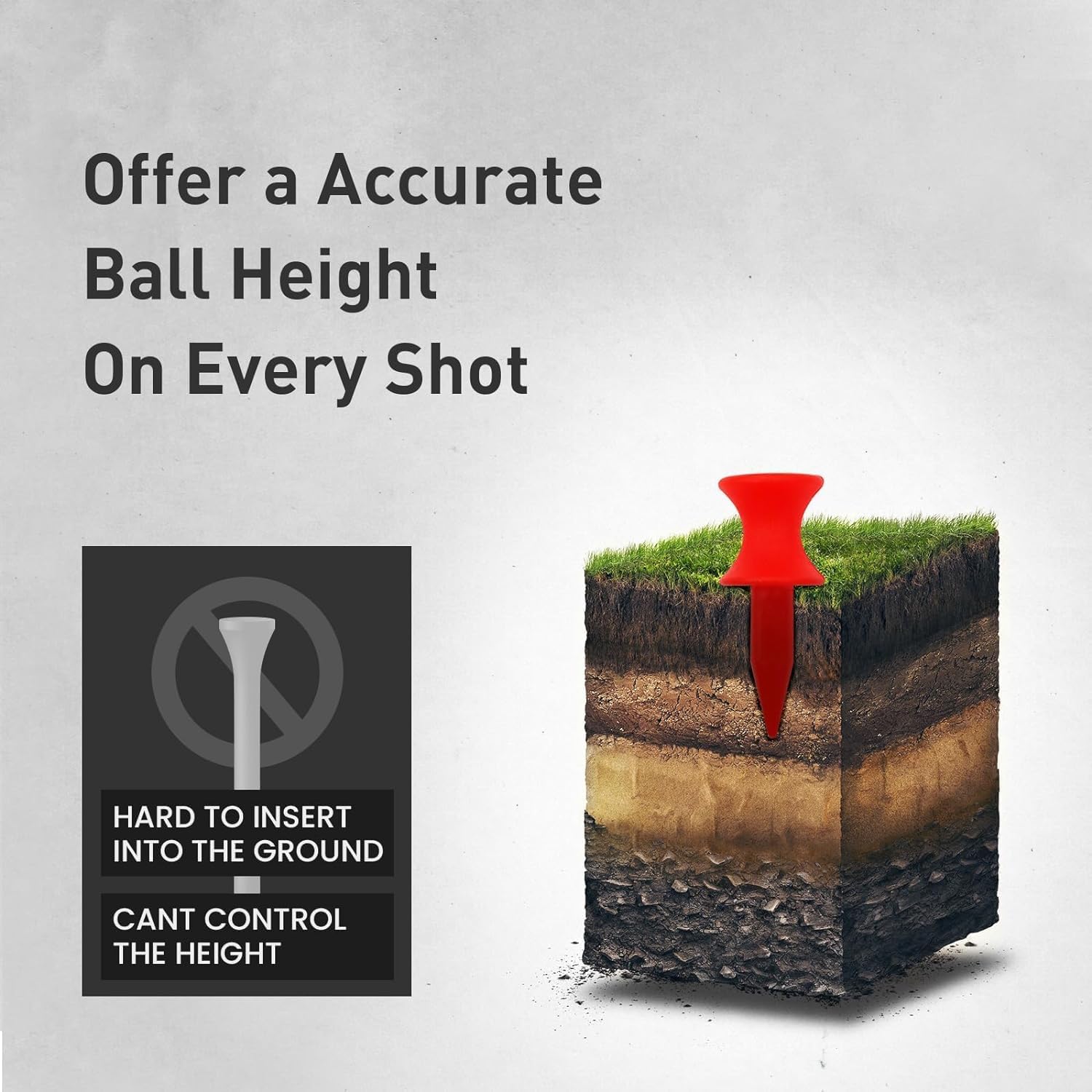 - Easy to Use: Easy to Push Into the Ground, Easy to Quickly Tee Up the Ball, Stable to Hold the Ball, and Won't Fall Off. Perfect for the Driver, Woods, and Irons to Get the Same Elevation on the Ball Time After Time.