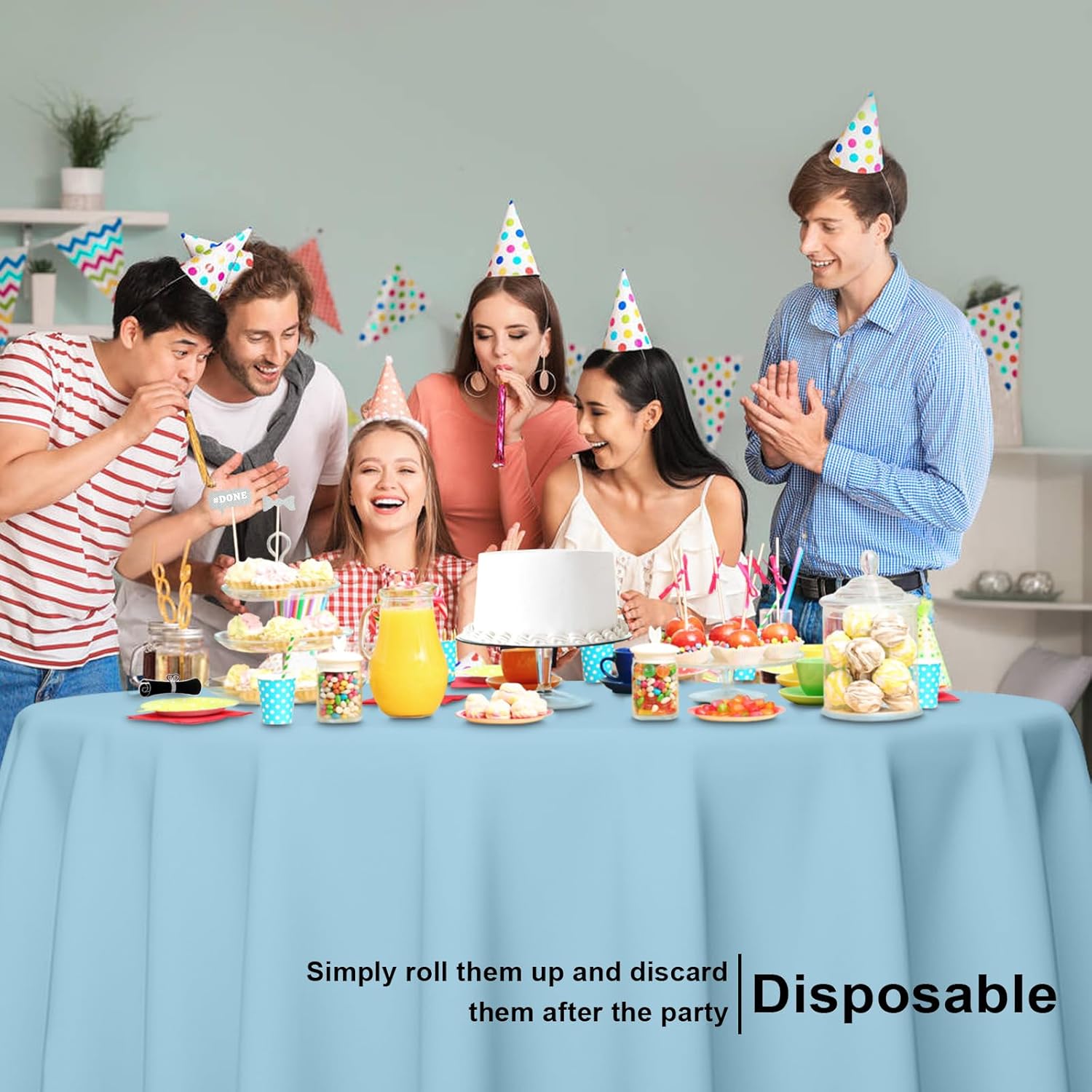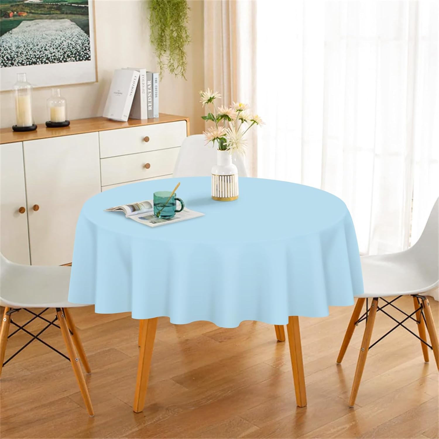 - 【Durable Plastic Tablecloths】Our round disposable light blue tablecloths are made of premium durable PE material, creating a waterproof barrier that keeps your table fully protected at all times. The disposable light blue tablecloth measures 84 x 84 inches, covers an 8-foot table, and can be cut to size. Our package includes a 3-pack of light blue plastic tablecloths, and you'll have enough covers for even big events or multiple occasions