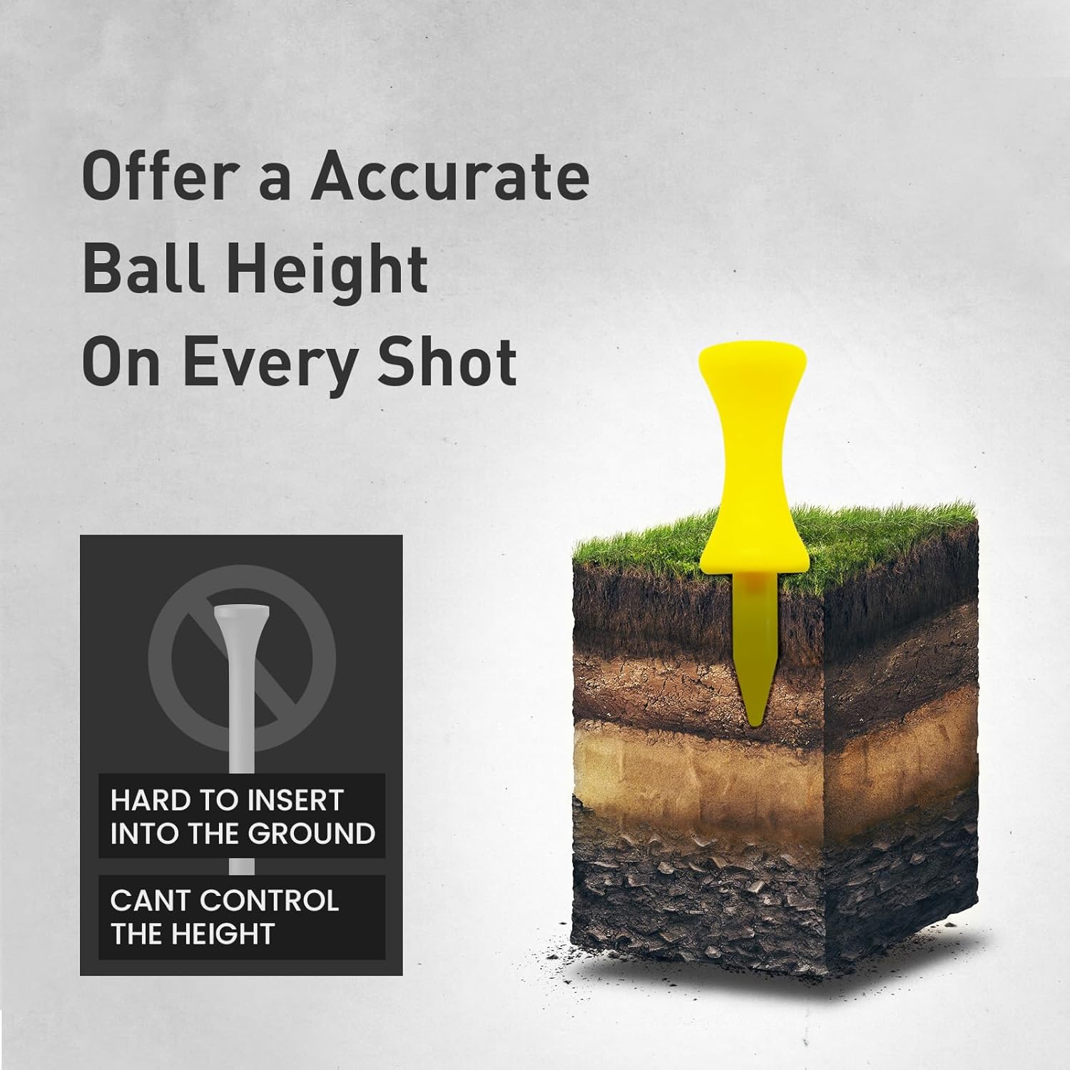 - Easy to Use: Easy to Push Into the Ground, Easy to Quickly Tee Up the Ball, Stable to Hold the Ball, and Won't Fall Off. Perfect for the Driver, Woods, and Irons to Get the Same Elevation on the Ball Time After Time.