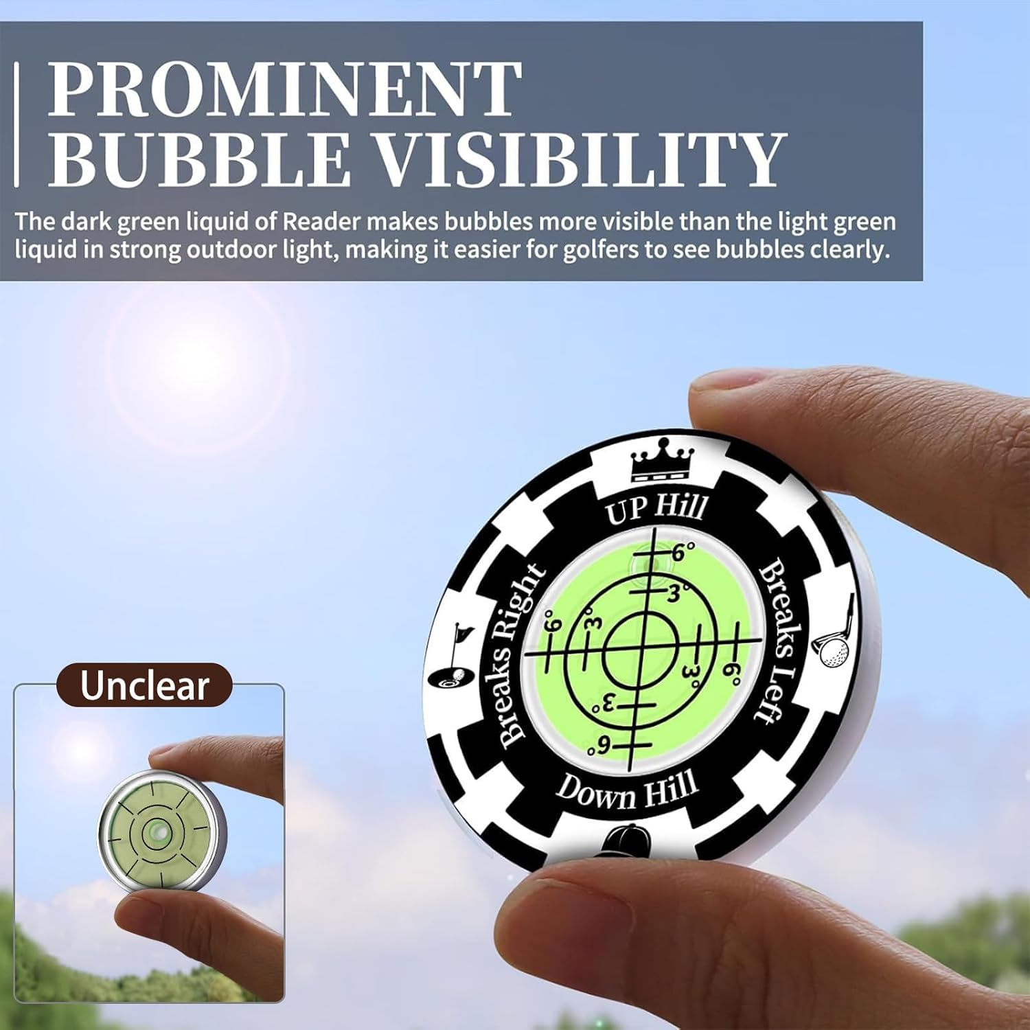 - PROMINENT BUBBLE VISIBILITY: We upgraded and replaced it with black liquid, which makes the bubbles particularly prominent. The liquid in most levels on the market is mostly green, which can make it difficult for golfers to see the bubbles clearly under strong outdoor lighting