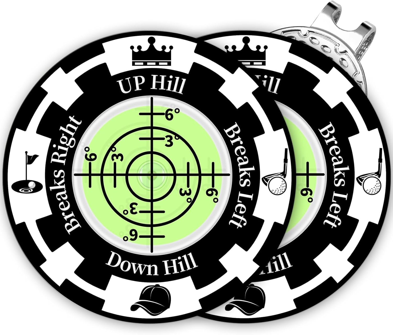 Golf Green Reader, 2 Pack Golf Ball Marker Hat Clip with High Precision Horizontal Bubble, Putting Training Aid Golf Accessories Tool Gift for Men Women