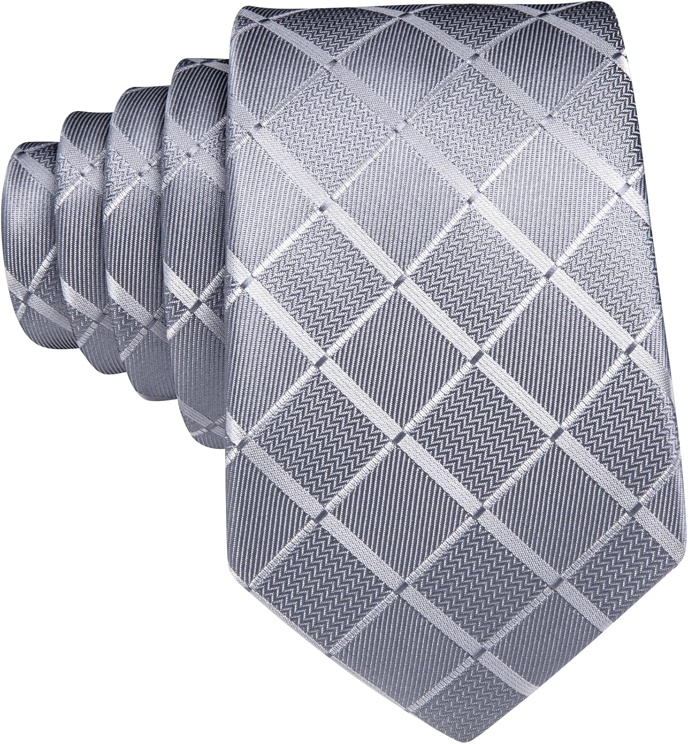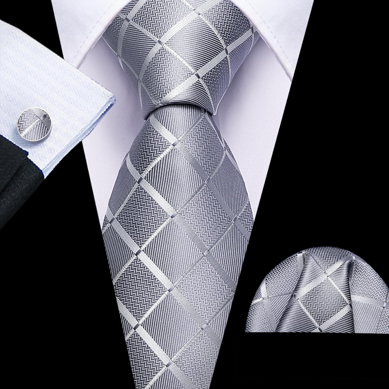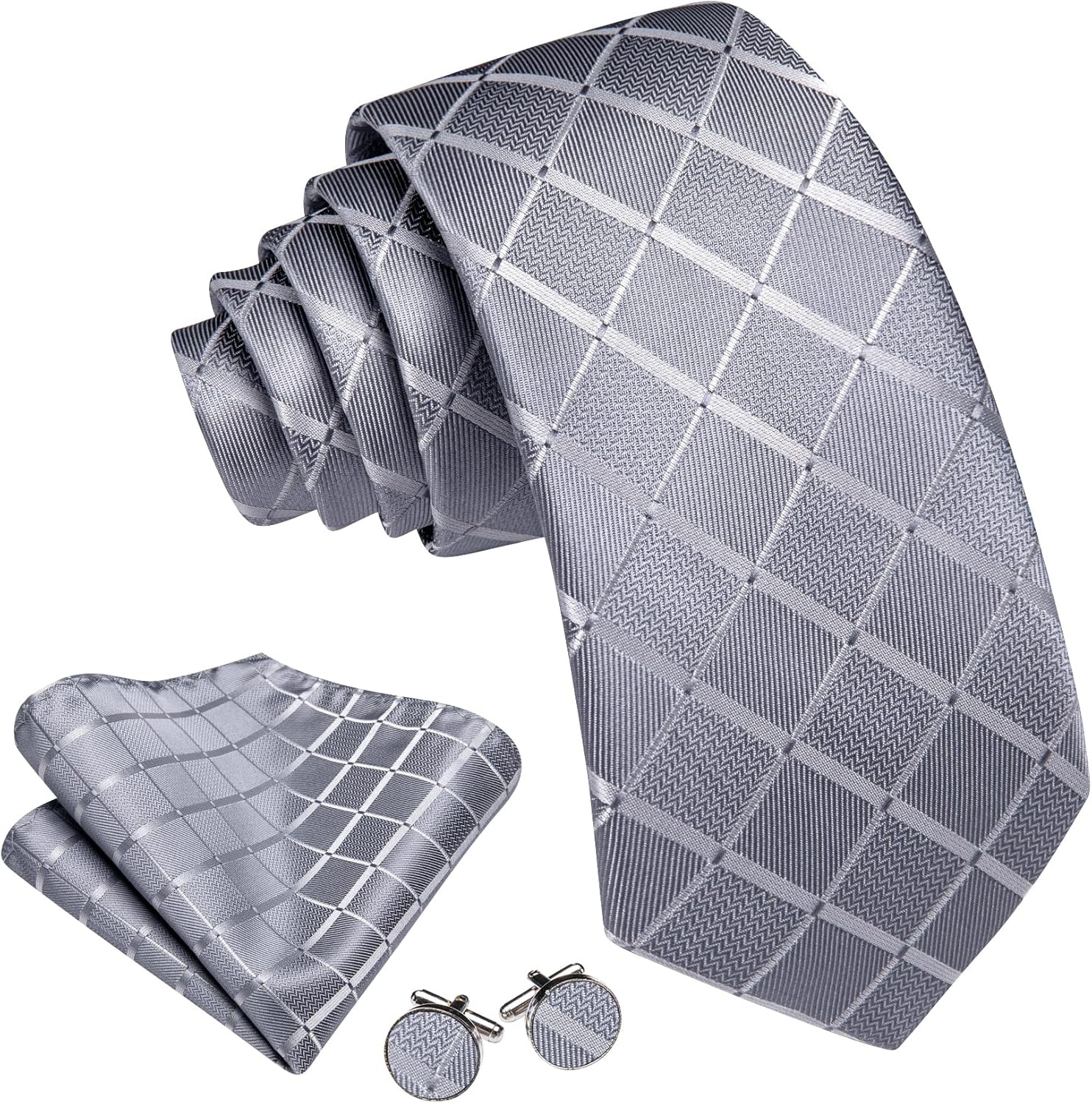 Barry.Wang Designer Classic Ties for Men Set Formal Pocket Square Cufflink Check Plaid