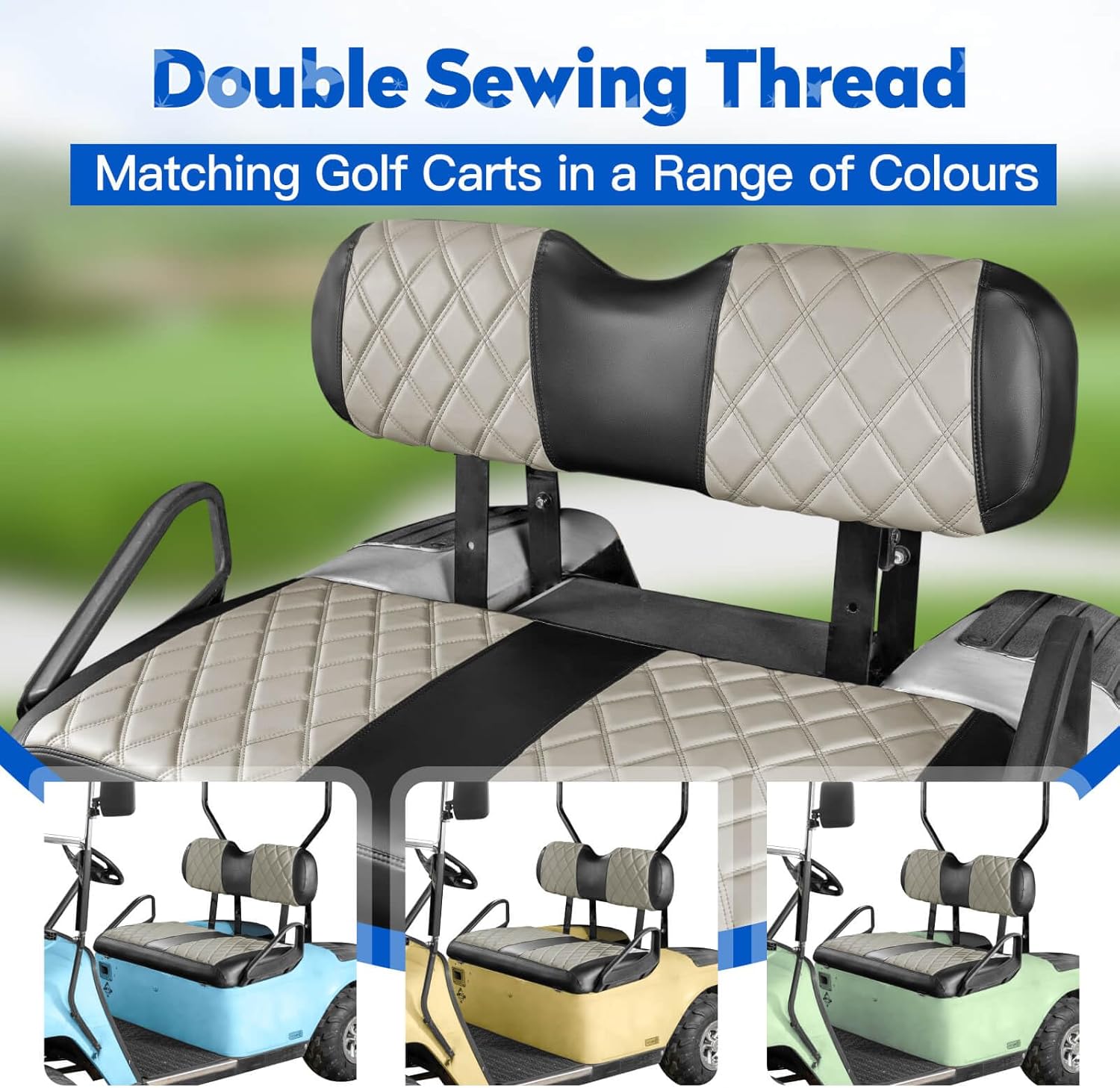 - 【Diamond Appearance Design】Golf cart front seat cover with diamond appearance design adds a touch of luxury and elegance to your golf cart, which will surely turn heads on the course. Premium and durable PVC vinyl leather brings ultimate enjoyment and comfort to your golf cart.