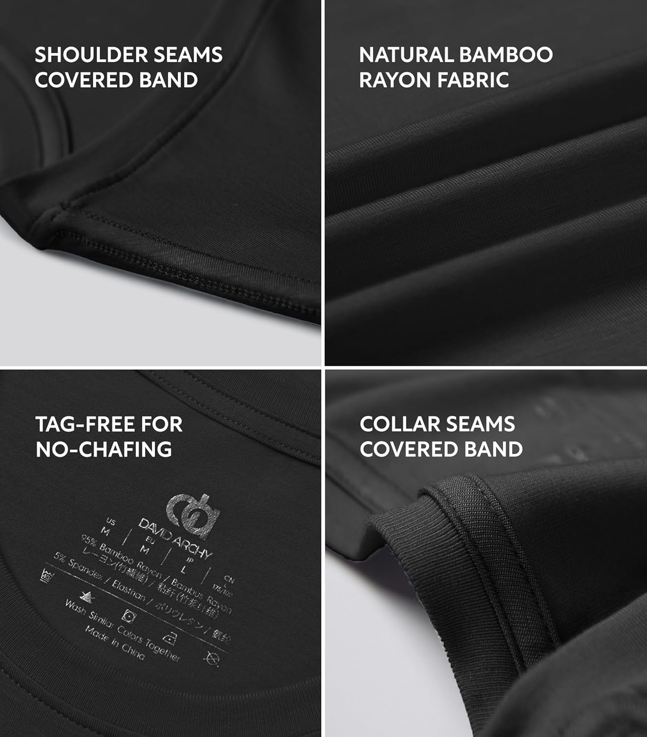 • MADE FOR LONG-LASTING COMFORT: The men's undershirt made from bamboo rayon featuring covered seams design maintains the collar shape after washing and tearing. Say goodbye to irritating collar seams and hello to a durable